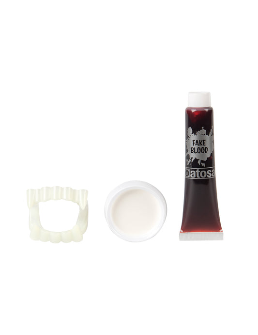 Vampirski komplet za šminku s dječjim protezamaUključeno: 1 proteza za vampirske zube, 3 sjenila za oči: bijelo, crno i crveno (3x3 g), 1 spužvica, 1 kist 8,99 €8,99 €