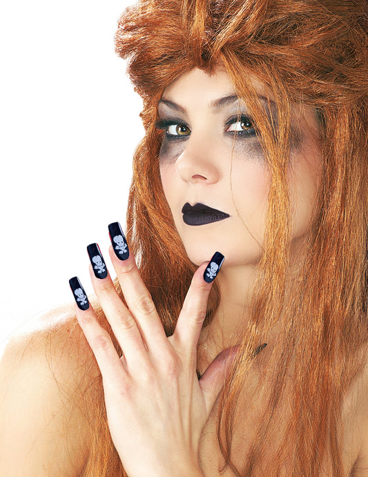 Uključeno: 1 crni ruž za usne, 10 umjetnih noktiju u obliku lubanje