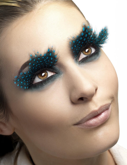 Lažno crno perje s odraslim plavim polka točkama