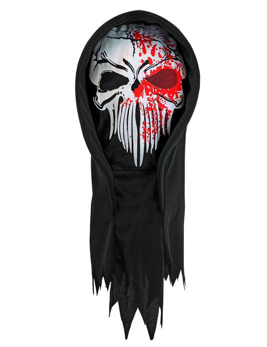 U punom kapuljaču nevidljive maske za lice i odraslih crvenih očiju