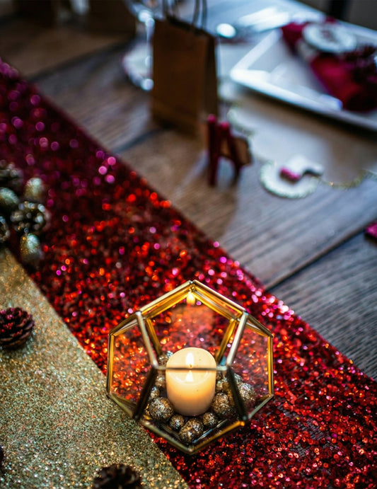 - Trkači za stol : Dodajte dašak sofisticiranosti uz pomoć satena, čipke ili šljokica.