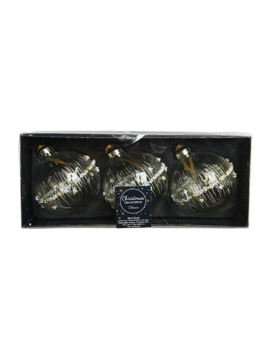 Rasprodano3 prozirne staklene božićne kuglice sa zlatnim šljokicama 8 cm