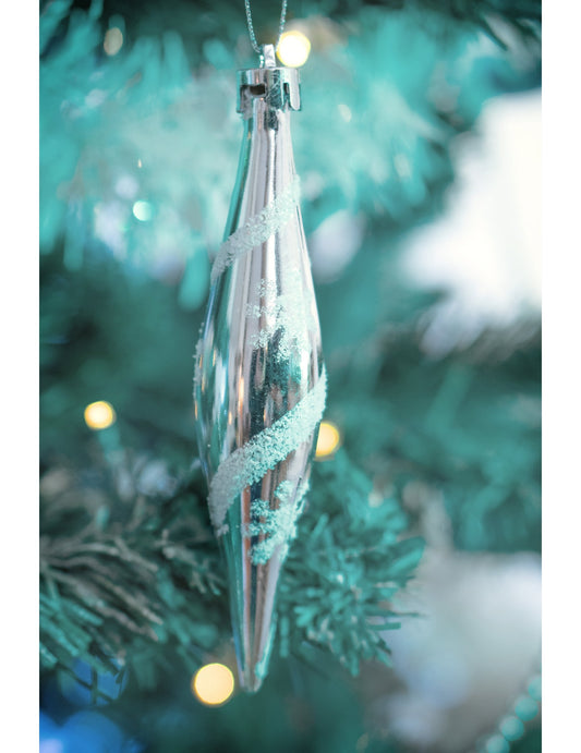 Promocija2 bijele staklene kuglice u obliku kapljice sa jelkama 13 cm