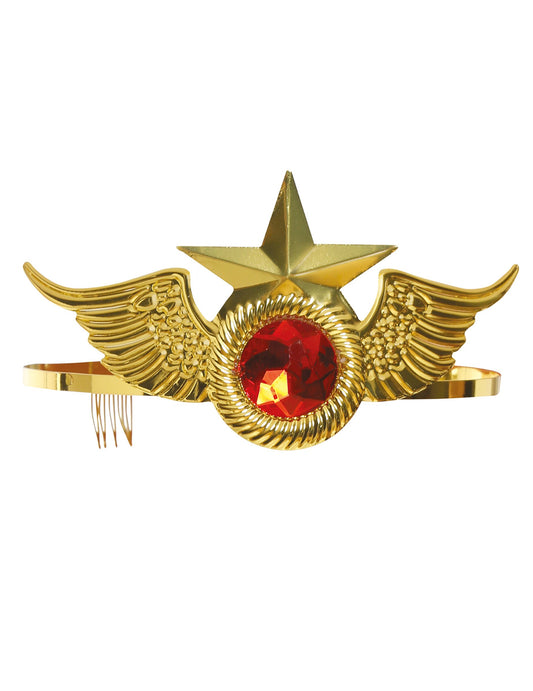 Zlatna metalna traka za glavu sa super heroinom crvenim kamenom ženom