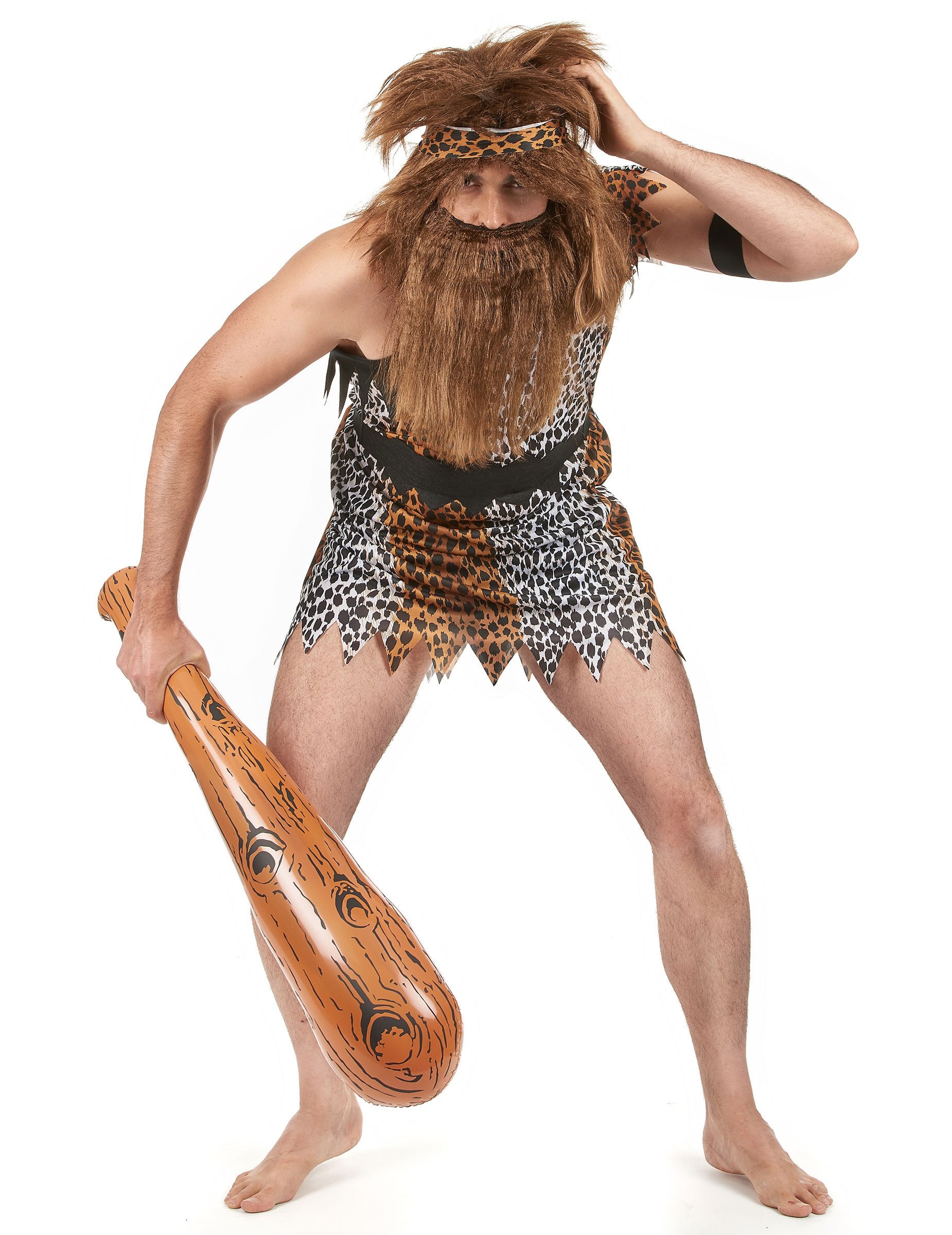 Kostim ovog špiljskog čovjeka uključuje haljinu, pojas, ruku sile i bend (perika i masaža na napuhavanje nisu uključeni). Haljina i traka za glavu su leopardov otisak. Izrezi na dnu i na razini torza evociraju odjeću koju je nosio lov. Veličina će biti označena crnim remenom odsječenim u točki da se veže iza leđa. Haljina je asimetrična, a održavanje će osigurati kratki rukav na lijevoj ruci. Oko ruke možete pričvrstiti crnu traku za zajamčeni virilni efekt! Konačno, natpis za tisak leoparda može vezati oko vaše kose ili oko perike. Ovo je prerušavanje idealno za proživljavanje večeri naših predaka na vatri!