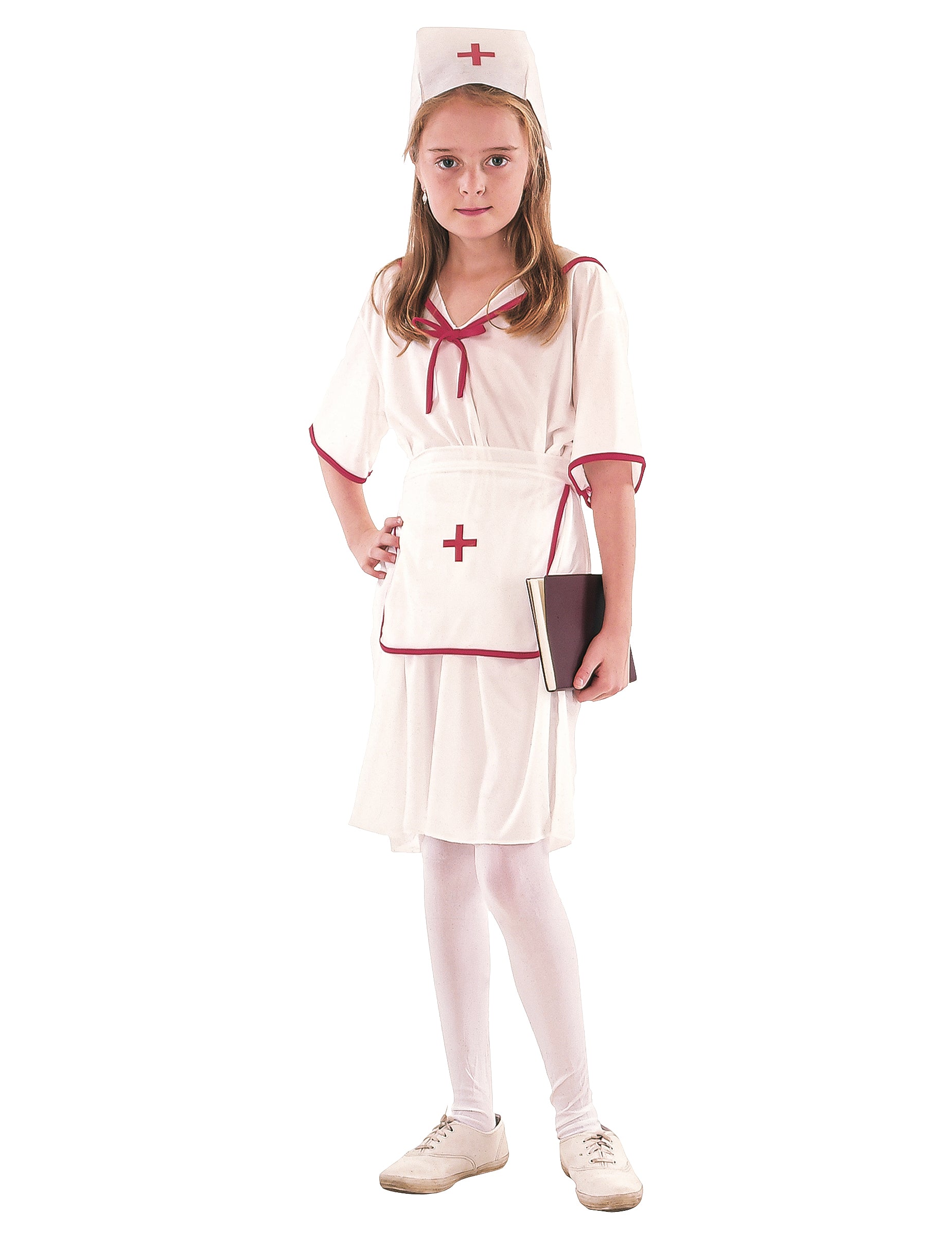 Prerušavanje ove djevojke za djevojku sastoji se od bijele haljine s crvenom obrubom, pregače s malim crvenim križem i odgovarajućom kapom (dodaci, tajice i cipele nisu uključeni). Ovaj kostim medicinske sestre bit će idealan za karneval ili povodom bilo kojeg prikrivenog događaja.
