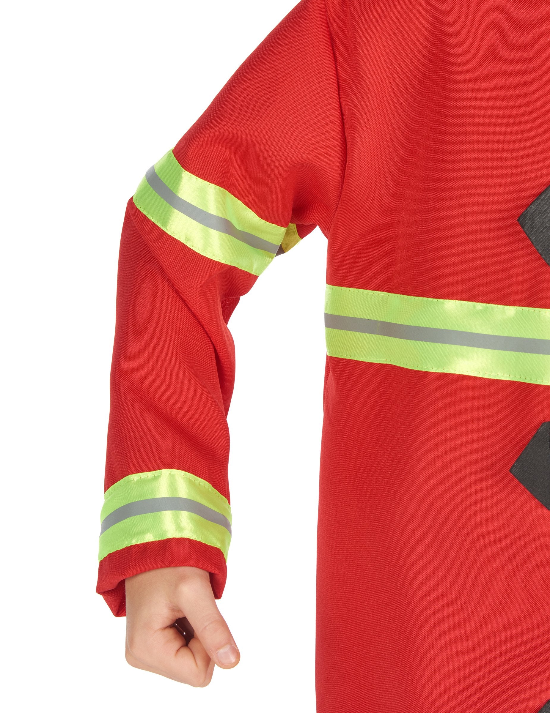 Ovaj vatrogasni kostim za djecu uključuje jaknu s ovratnikom, hlače i odgovarajuću kapu. Crvena jakna ukrašena je reflektirajućim prugama za realističan i profesionalan učinak, podsjećajući na uniformu pravih vatrenih heroja. Crvene hlače su fluidne i imaju elastični pojas te pružaju optimalnu udobnost pri trčanju u pomoć građanima. Vatrogasna kapa upotpunjuje ovu odjeću i daje završni pečat ovom kostimu. Idealan za karneval, rođendansku zabavu ili tematski dan, ovaj kostim učinit će vaše dijete pravim svakodnevnim herojem!
