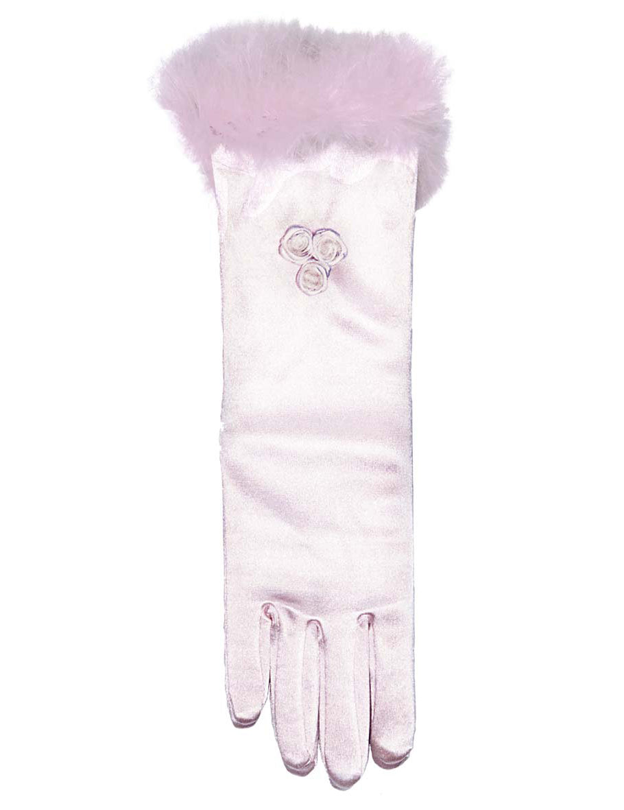 Par srednjih rukavica za djecu, izrađenih u satenom materijalu za mekši dodir. Na svaku rukavicu ušivene su tri male ruže. Na kraju rukavice na zglobu su mala ružičasta pera. Ove glamurozne rukavice savršene su s kostimom princeze ili večernjim haljinama za karneval ili za prikriveni događaj. Copyright Widmann Srl. Autorska prava Widmann SRL