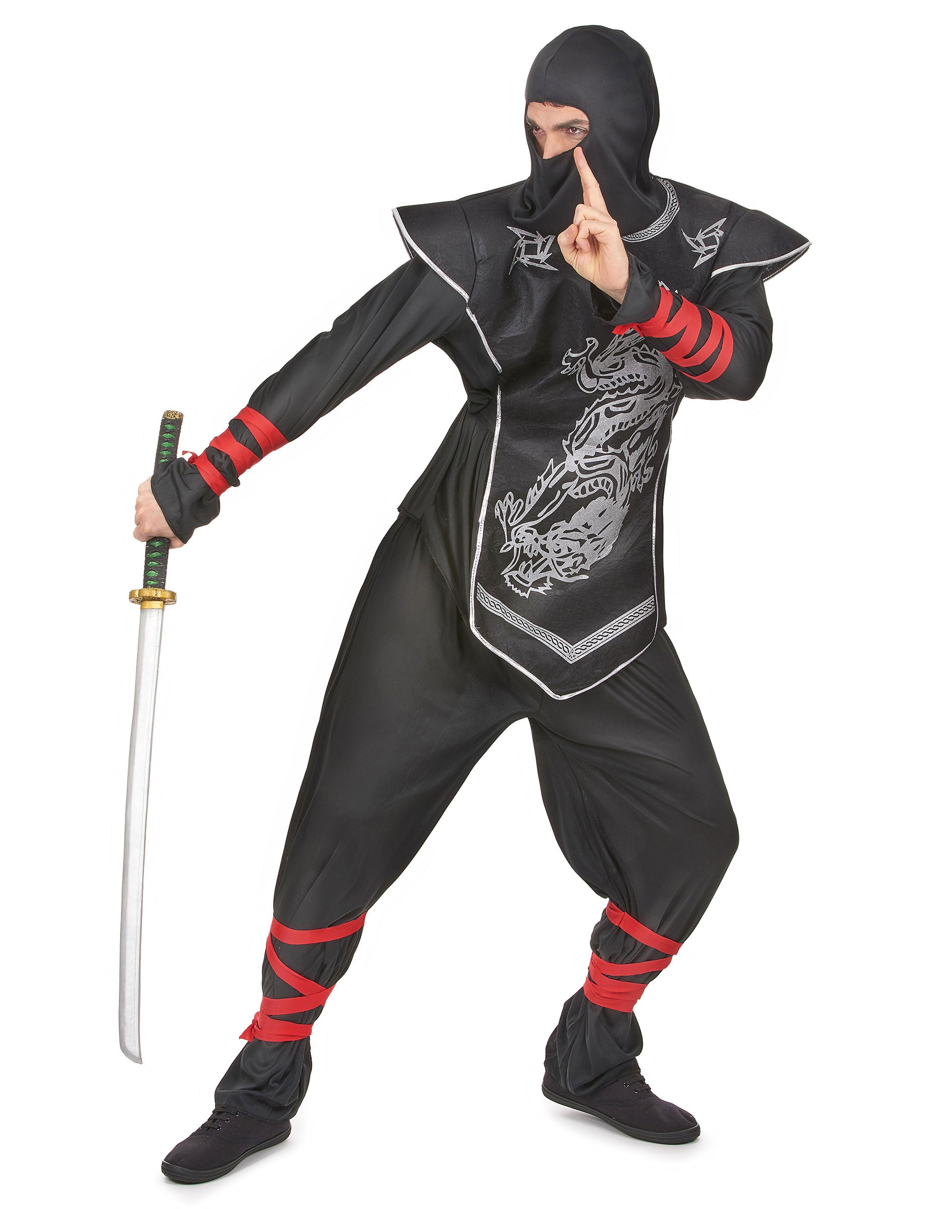 Ovaj kostim ninja za muškarce sastoji se od vrha, plastrona, hlača i haube (sablja nije uključena). Vrh je crn i dugačak. Svoj napredak možete zaokružiti isprepletenim crvenim vrpcama. Plastron je ušiljen na vrhu. Napravljen je od gustih filca i s ramenima vam neće propustiti puno tempa. Morat ćete izgraditi samo dvije veze na leđima kako biste je prilagodili svojoj morfologiji. Sivi zmaj i Shuriken su na prednjoj strani. Hlače su široke i s čistom elastičnom veličinom osigurajte vašu udobnost. U teladi možete ispreplesti crvene vrpce kako biste savili dno hlača. Napokon, kapuljača će vam se ogrebati u vratu i ostaviti otkrivene oči. Ovo je vrlo cjelovit kostim kako biste prešli inkognito od svojih prijatelja tijekom karnevala ili za bilo koji drugi prikriveni događaj!