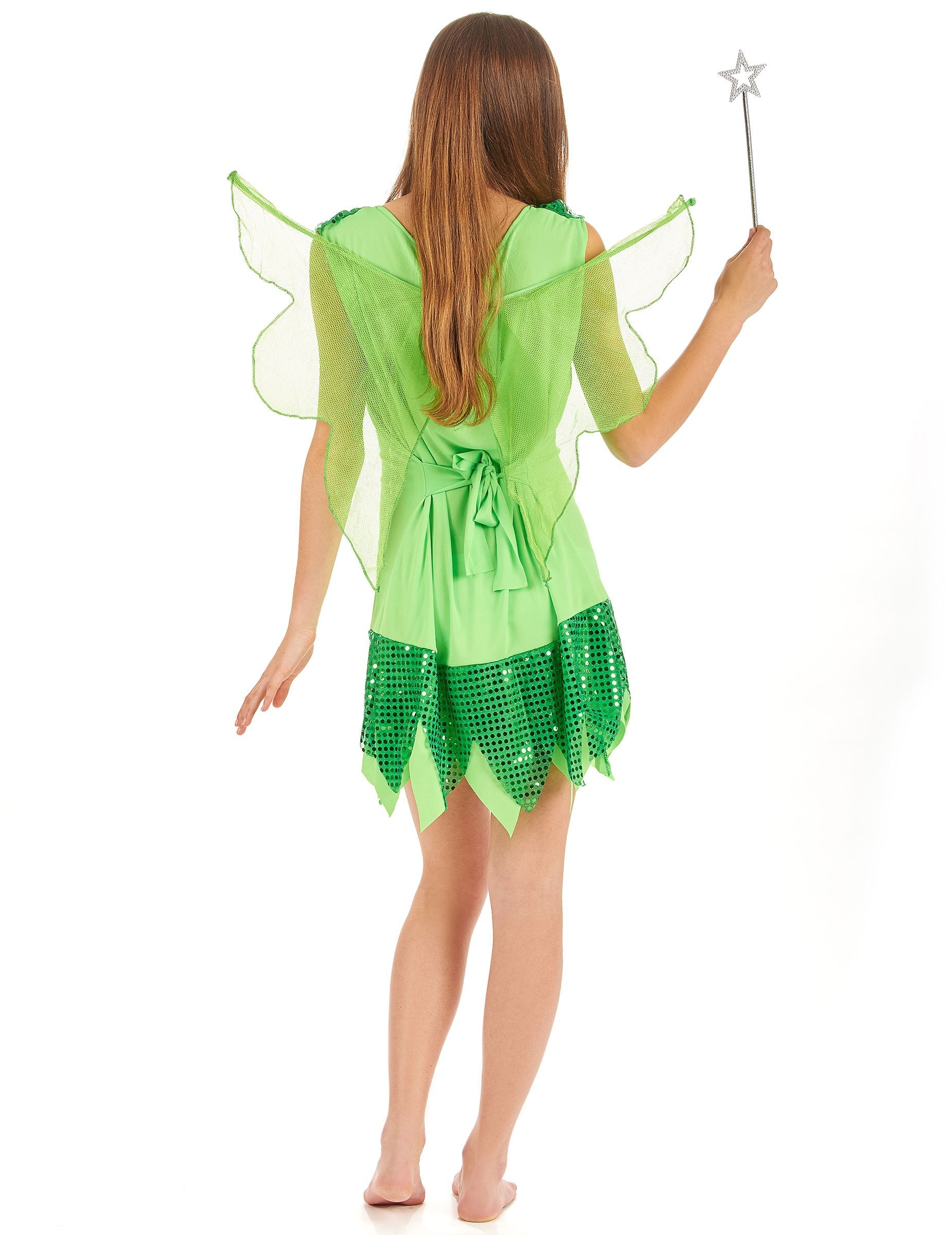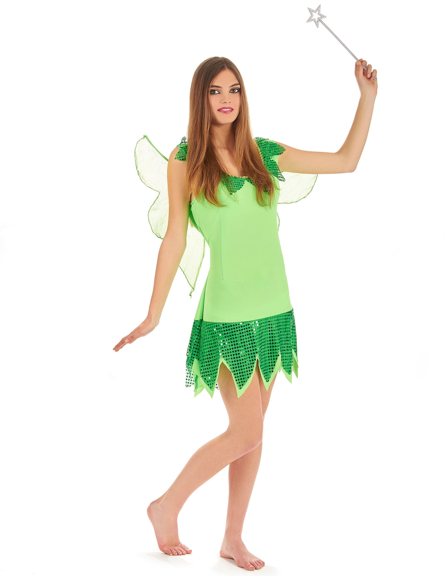 Ovaj zeleni kostim za žene sastoji se od haljine i par krila. Haljina je dizajnirana u vrlo svijetlozelenoj tkanini, ukrašena zlatnom obrubom na prsima i sjajnim uzorcima u dekolteu i dnu haljine. Krila su vrlo lagana i pričvršćena su na prerušavanje u leđa (štapić nije uključen). Ovaj je kostim savršen za postajanje najljepšeg sajma za vaše tematske večeri, za karneval, za predstavu ili za bilo koji drugi prikriveni događaj.