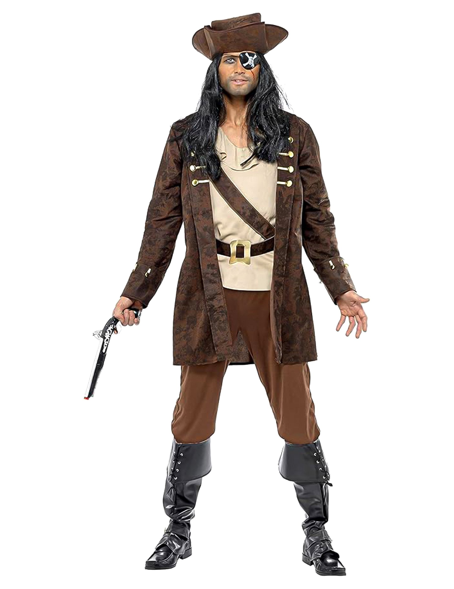 Ovaj gusarski prerušavanje za muškarce uključuje veličanstvenu jaknu srednje duljine s gumbima i zlatnim šavovima koji ugrađuju majicu i pojas. Hlače, elastične u struku, je Corsair u finoj tkanini. Šešir je u fleksibilnoj tkanini koja se dobro prilagođava obliku glave. (Perika, pištolj i čizme nisu uključeni) Ovaj je kostim savršen za prerušavanje tijekom karnevala i za vaše gusarske praznike.
