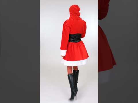 Ova matična božićna kostim za žene sastoji se od haljine s haubom i korzetom. Haljina je kratka s potomstvom dekoltea. Korset, imitacijska koža, također služi kao pojas, čipka da se savršeno prilagodi vašoj silueti. Ovaj kostim će vas učiniti seksi božićnom majkom u novogodišnjoj noći.