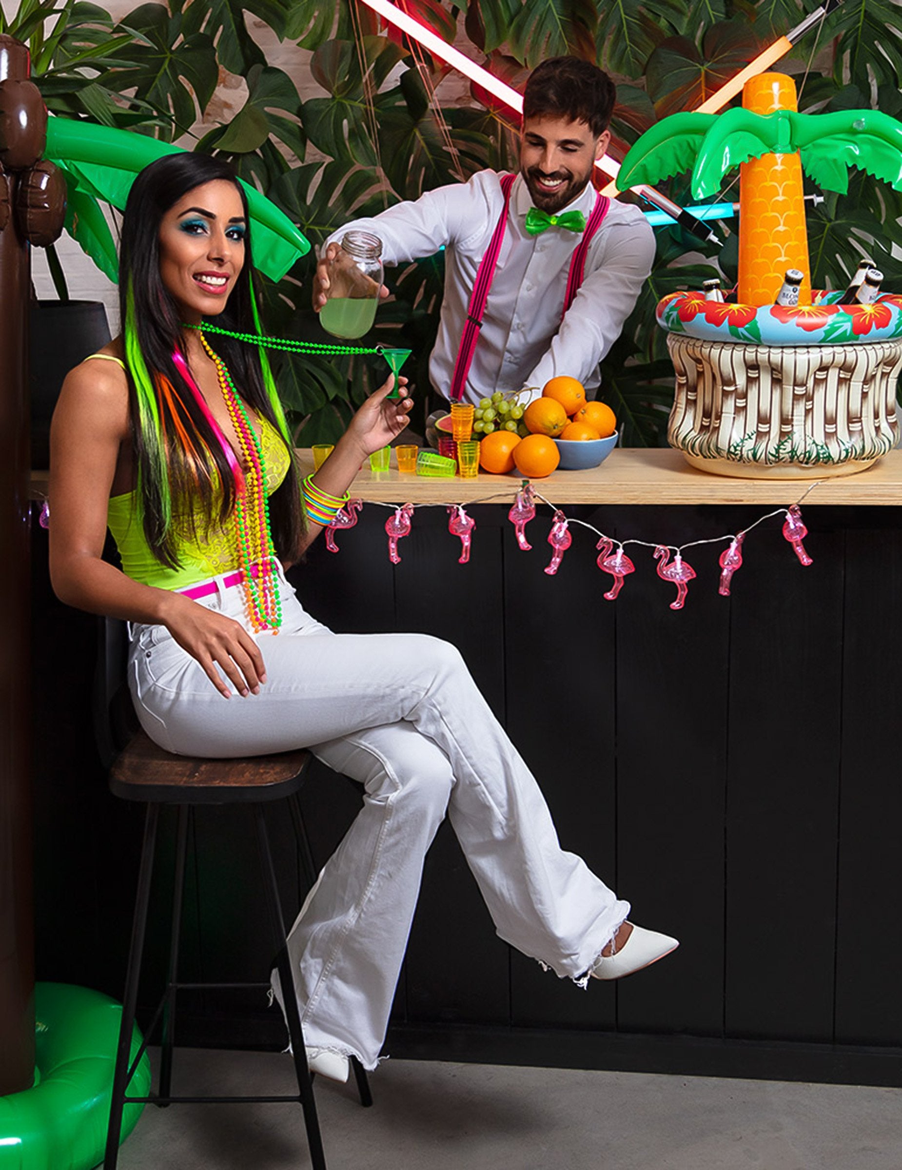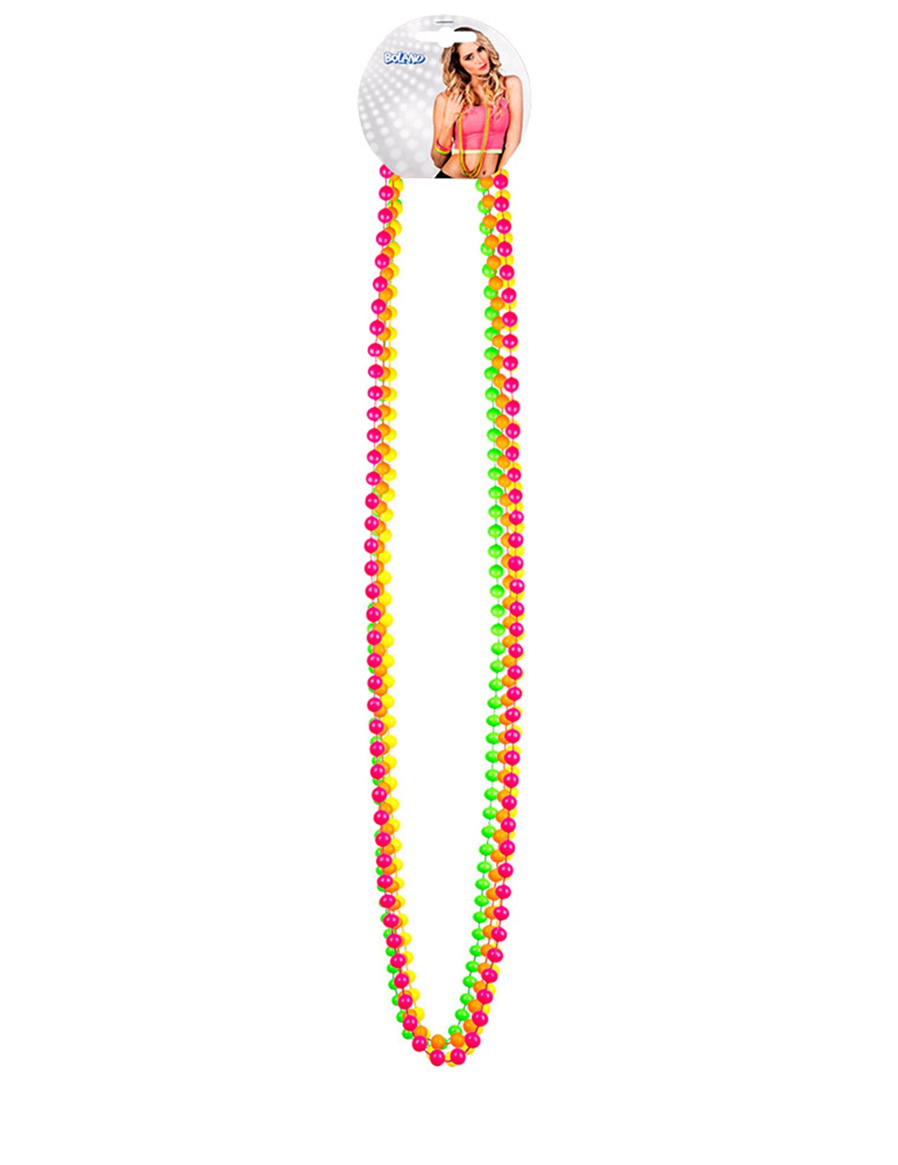Ova serija ogrlica neonskog bisera sastoji se od ružičaste, zelene, žute i narančaste ogrlice. Biseri su promjera oko 0,8 cm. Ove ogrlice savršene su za vaše večeri s prijateljima, nećete proći nezapaženo na plesnom podiju!