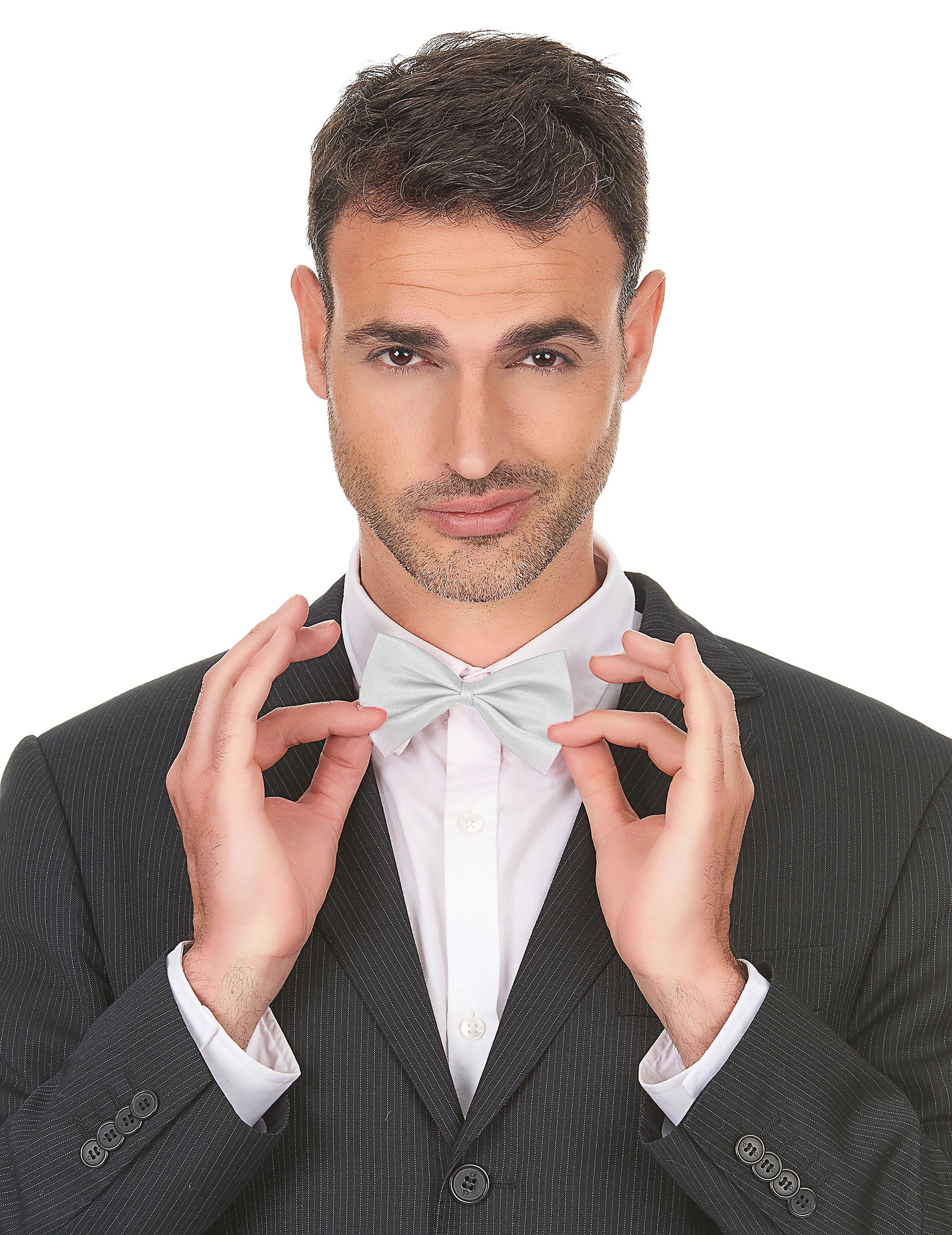 Ovaj bijeli čvor leptira nosi se elastikom. Širina je otprilike 12 cm. Savršeno će vam dovršiti prerušavanje tijekom kostimiranih ili tema 20. tematiziranih večeri.
