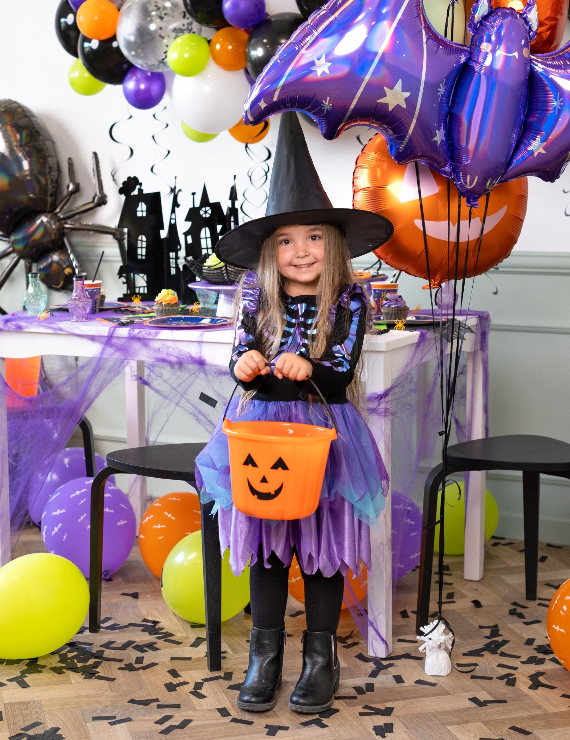 Ova kanta od bundeve 17 cm Savršeno će pratiti mala čudovišta u svom okupljanju zastrašujućih poslastica. Njegov svijetli narančasti okrugli dizajn, ukrašen klasičnim licem-O'-Lantern Lice, stvara neposredan vizualni efekt. Opremljen čvrstom ručkom, praktično je nositi cijelu večer. Savršeni dodatak za zabavu, tematsku žensku zabavu.
