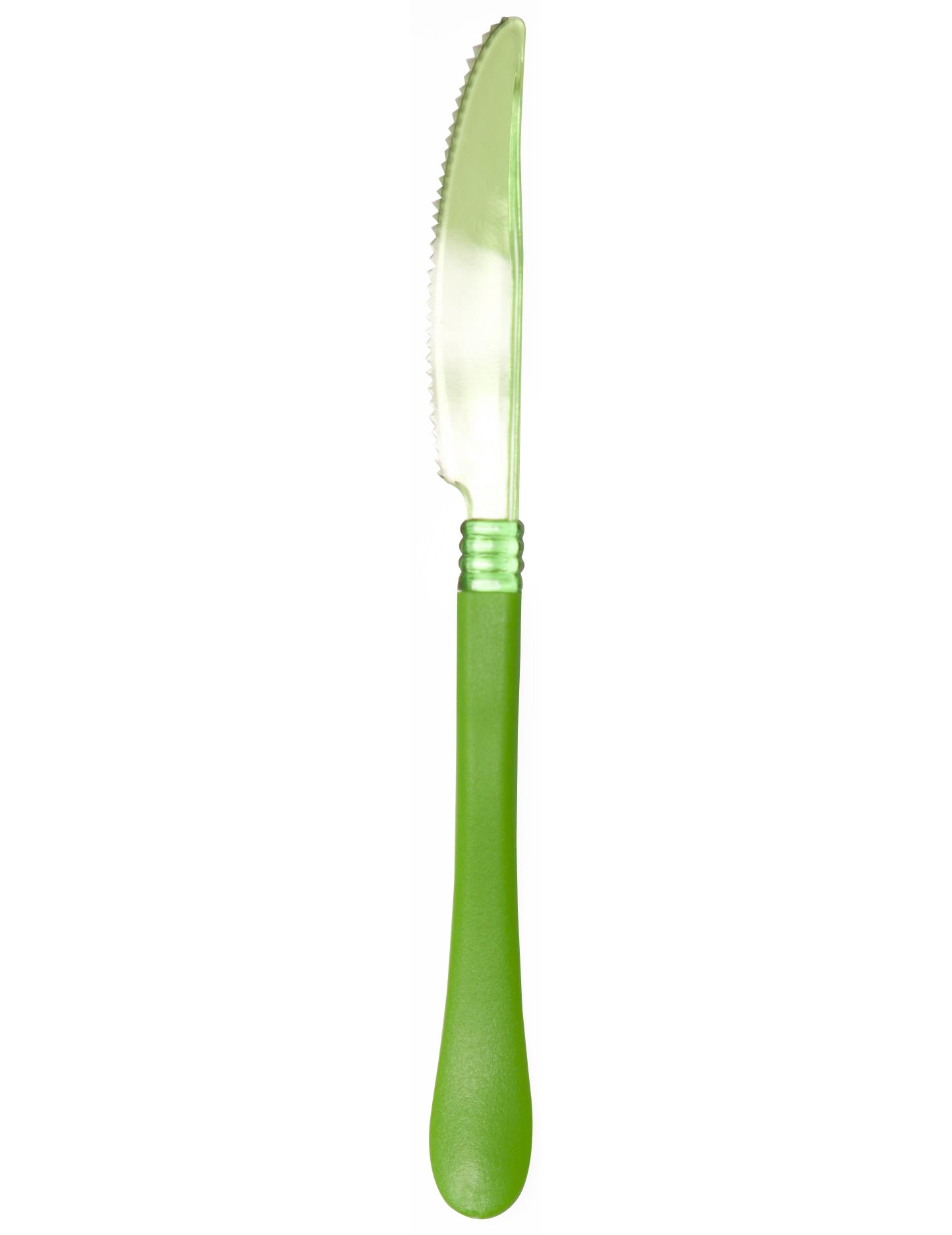 Set od 10 plastičnih noževa zelene boje duljine 20 cm. Oni se mogu praviti i višekratnu upotrebu. Oni će biti savršeni za ukrašavanje vašeg stola i prije svega vrlo praktični.