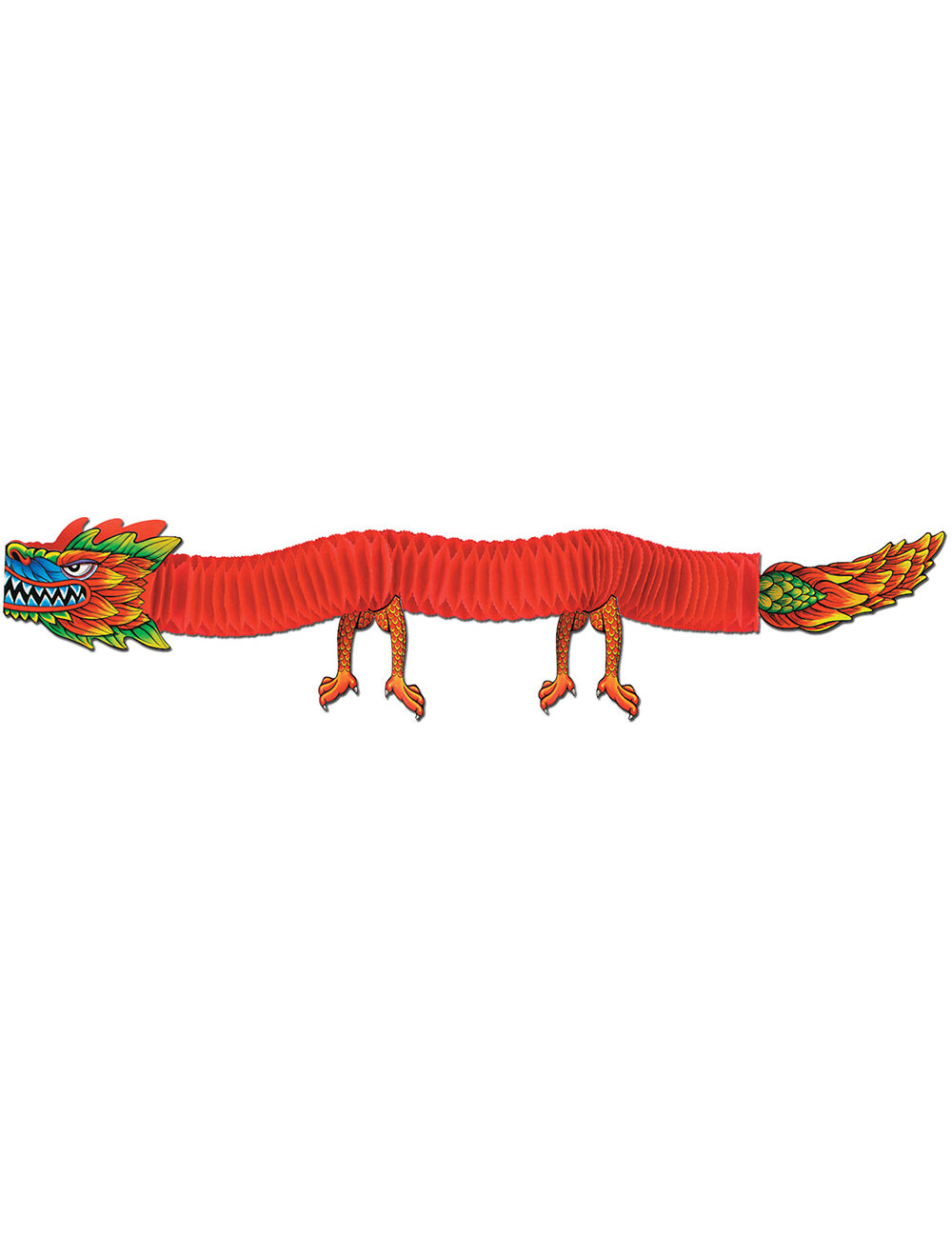 Zidni ukras koji predstavlja kineskog zmaja. Sastoji se od glave, nogu i kartonskog tijela i crvenog krep papira i mjeri 1,8 metara duljine. Stiže se zahvaljujući žicama. Savršeno za ukrašavanje vaše sobe tijekom kineske nove godine.