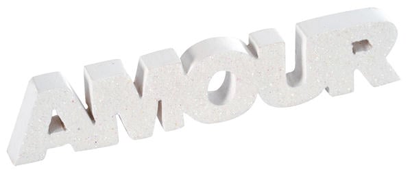 "Ljubav" u bijelom drvu, može se koristiti u ukrasu stola ili ukrašavanju zida/ ove ukrase mjere 2,5 cm x 12 cm