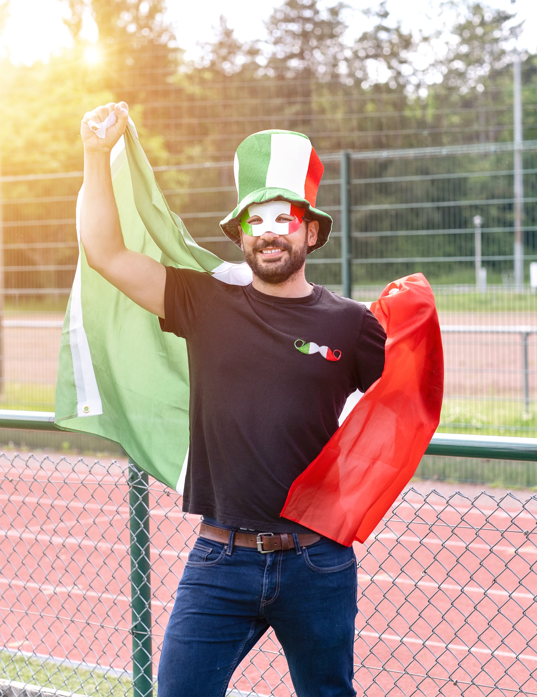 Ovaj trobojni vuk nalazi se u bojama Italije. Lako se održava iza glave zahvaljujući dvije crne vrpce. Ovaj dodatak bit će idealan za prikaz vaše podrške talijanskom timu na stadionu ili povodom prerušene večeri.