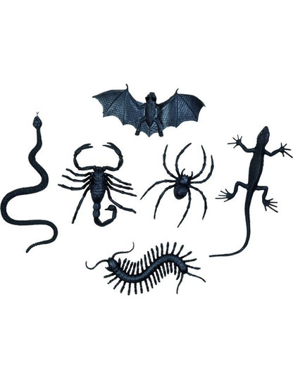 Ovaj se komplet sastoji od 6 malih zastrašujućih stvorenja: Škorpion, mygale, palica, guštera, zmija i središnja i središnja. Ove mjere između 8 i 15 cm. U crnoj plastici ta će bića biti idealna za užasan ukras tijekom Noći vještica.