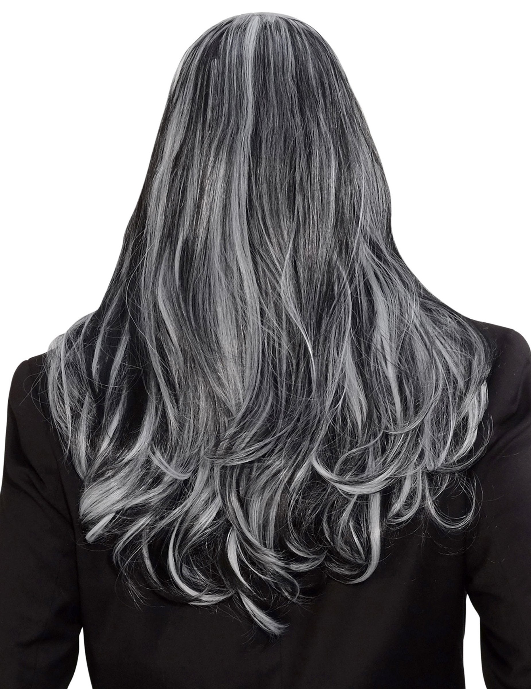 Ova vampirska perika za odrasle ima dugu sintetičku kosu. Kosa, glatka, je crno -bijela. Ovaj dodatak bit će savršen za dovršavanje vampirskog kostima za večer na temu horora ili za Noć vještica. Copyright Widmann Srl. Autorska prava Widmann SRL