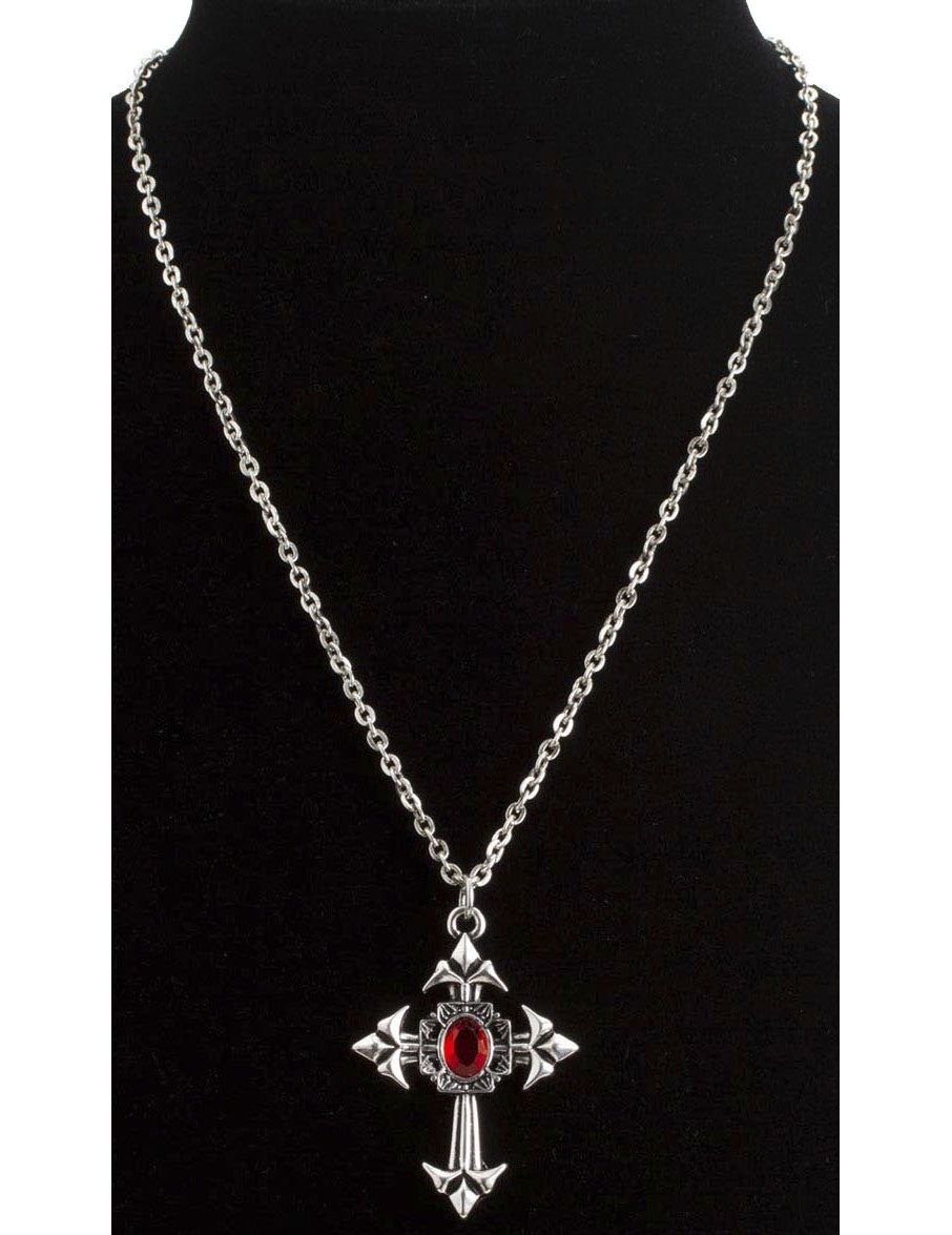 Ova metalna gotička ogrlica vampira za odrasle ima privjesak u obliku križa. Srebrni u boji, ovaj je križ ukrašen lažnim dragocjenim crvenim kamenom u svom središtu. Ovaj križ mjeri otprilike 4 x 3 cm. Ova ogrlica zatvara se zahvaljujući metalnom karabinu. Ima vrat od oko 43 cm. Ova ogrlica bit će savršena za dovršavanje vašeg gotičkog vampirskog kostima za večer prikrivenu s prijateljima ili za proslavu Noći vještica. Copyright Widmann Srl. Autorska prava Widmann SRL