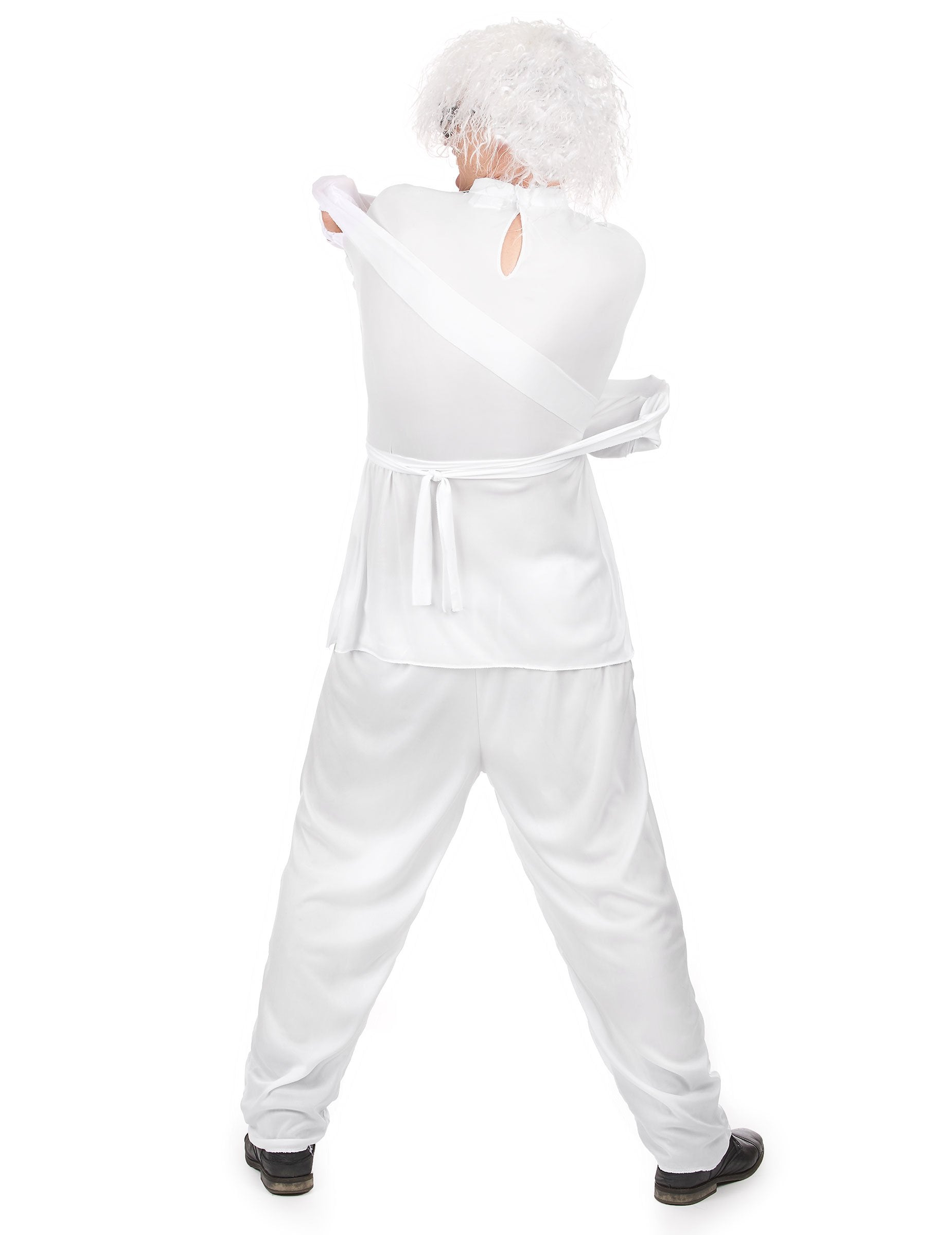 Ovaj kostim ludaka u luđačkoj košulji sastoji se od gornjeg dijela i hlača (perika nije uključena). Gornji dio je bijele boje s dugim rukavima i ima 2 tekstilne trake na svakom ramenu. Te trake se pričvršćuju sprijeda na prsima.