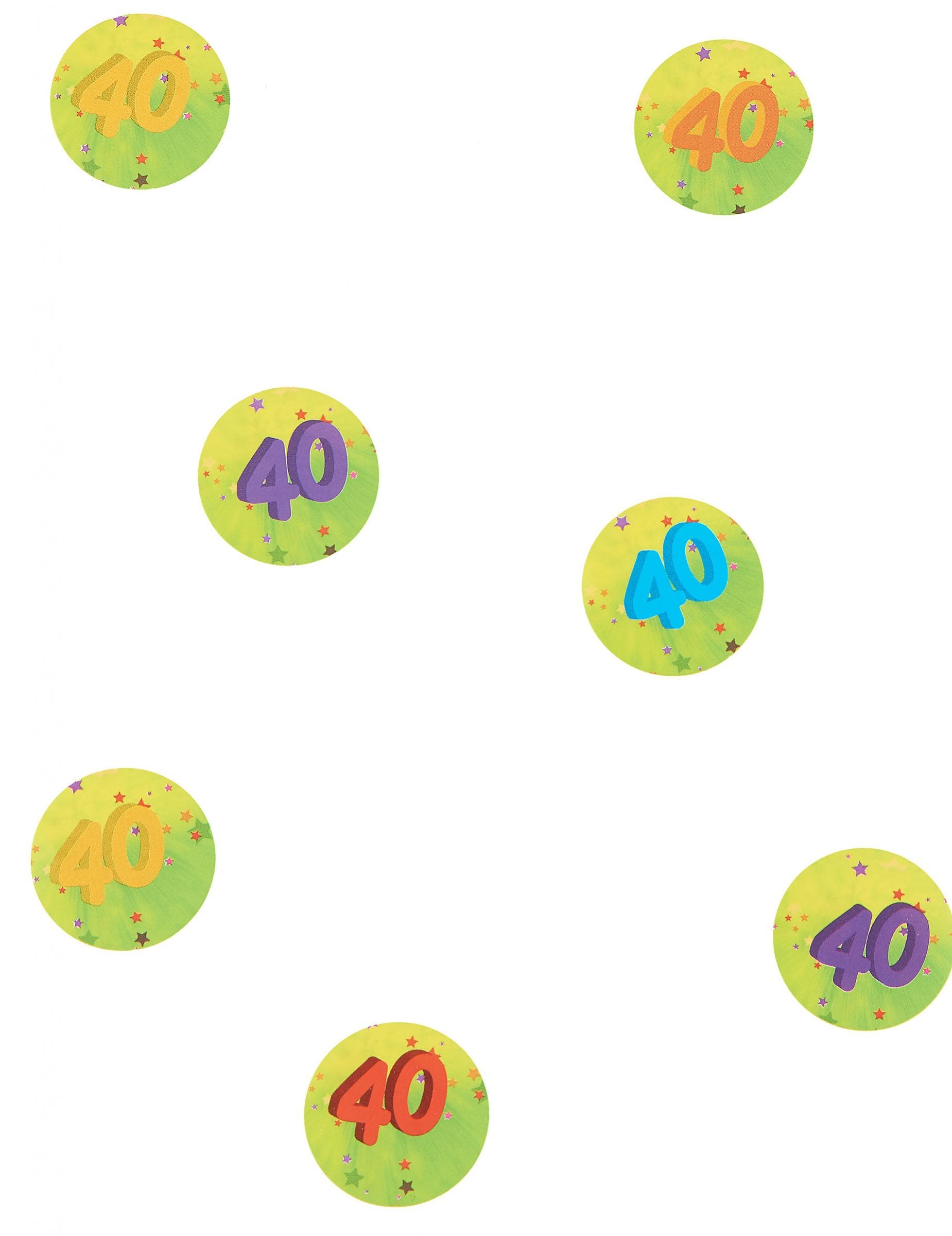 Ova vreća uključuje 150 40 godina rođendana. U kartonskom papiru promjera su oko 2,5 cm. Zelene su i žute boje s malim obojenim zvijezdama, kao i broj 40 ispisano na njemu. Ovi konfeti stola omogućit će vam da dovršite svoj ukras za rođendan i donesete dodir boje na dan svojih 40 godina. Napravljeno u Francuskoj.