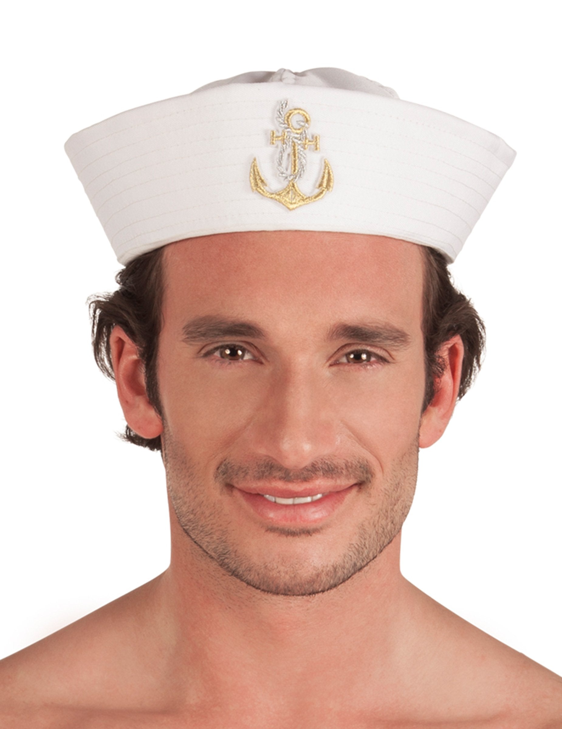 Ovaj mornarski šešir je za odrasle. Potpuno bijelo, zlatno i srebrno sidro izvezeno je na prednjoj strani za zagarantirani elegantni efekt! Lako se odlaže na glavu zahvaljujući promjeru od oko 18 cm. Ovaj dodatak će elegantno ukrasiti vašu uniformu za večer prikrivenu na temu mornara!