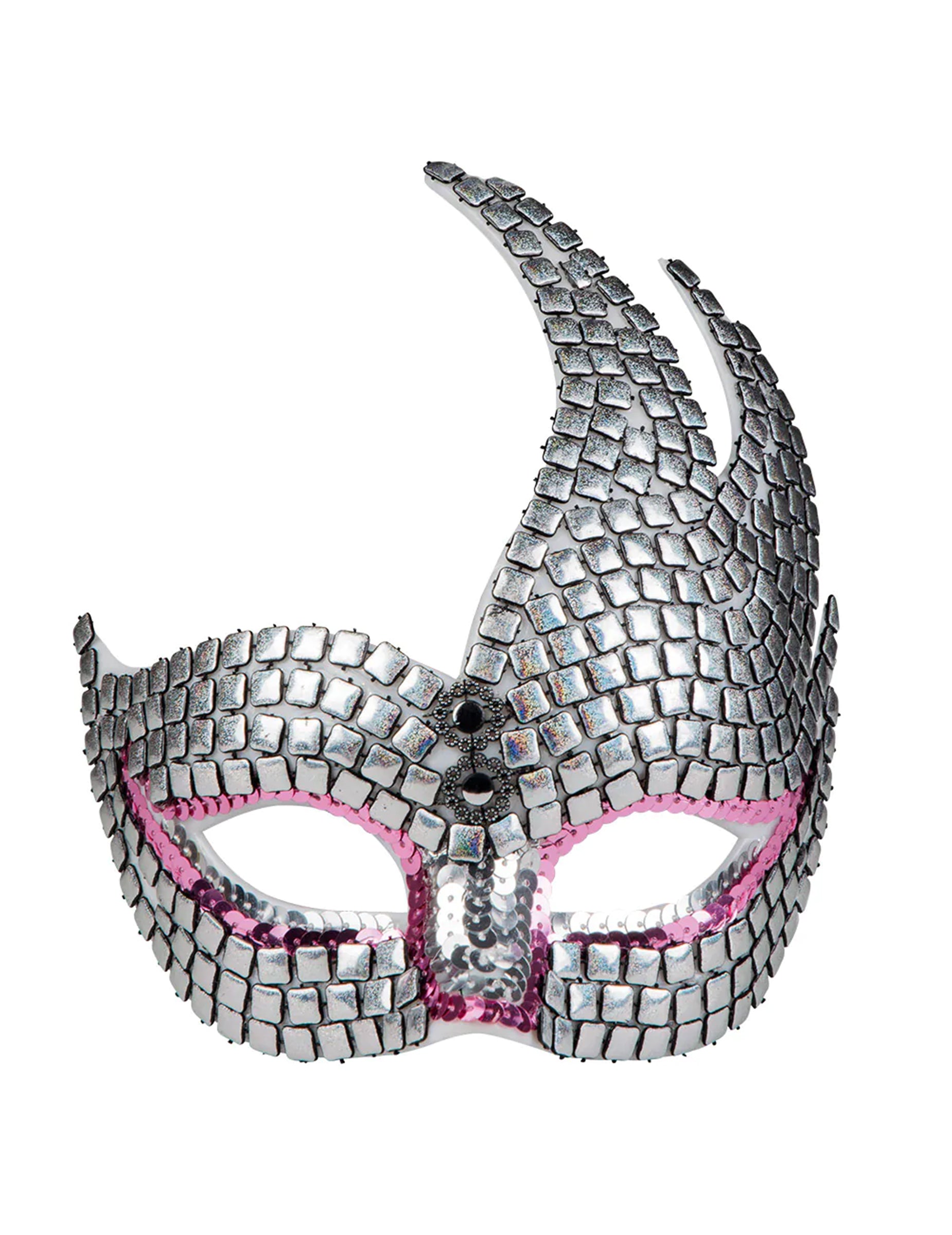 Ovaj venecijanski vuk za odrasle je sjajne srebrne boje, ružičasta linija oko očiju donosi dodir boje u masku. Ako se želite prerušiti na temu Italije, ovaj je članak za vas. Sjajni venecijanski vuk za odrasle prednost je prikrivene večeri.