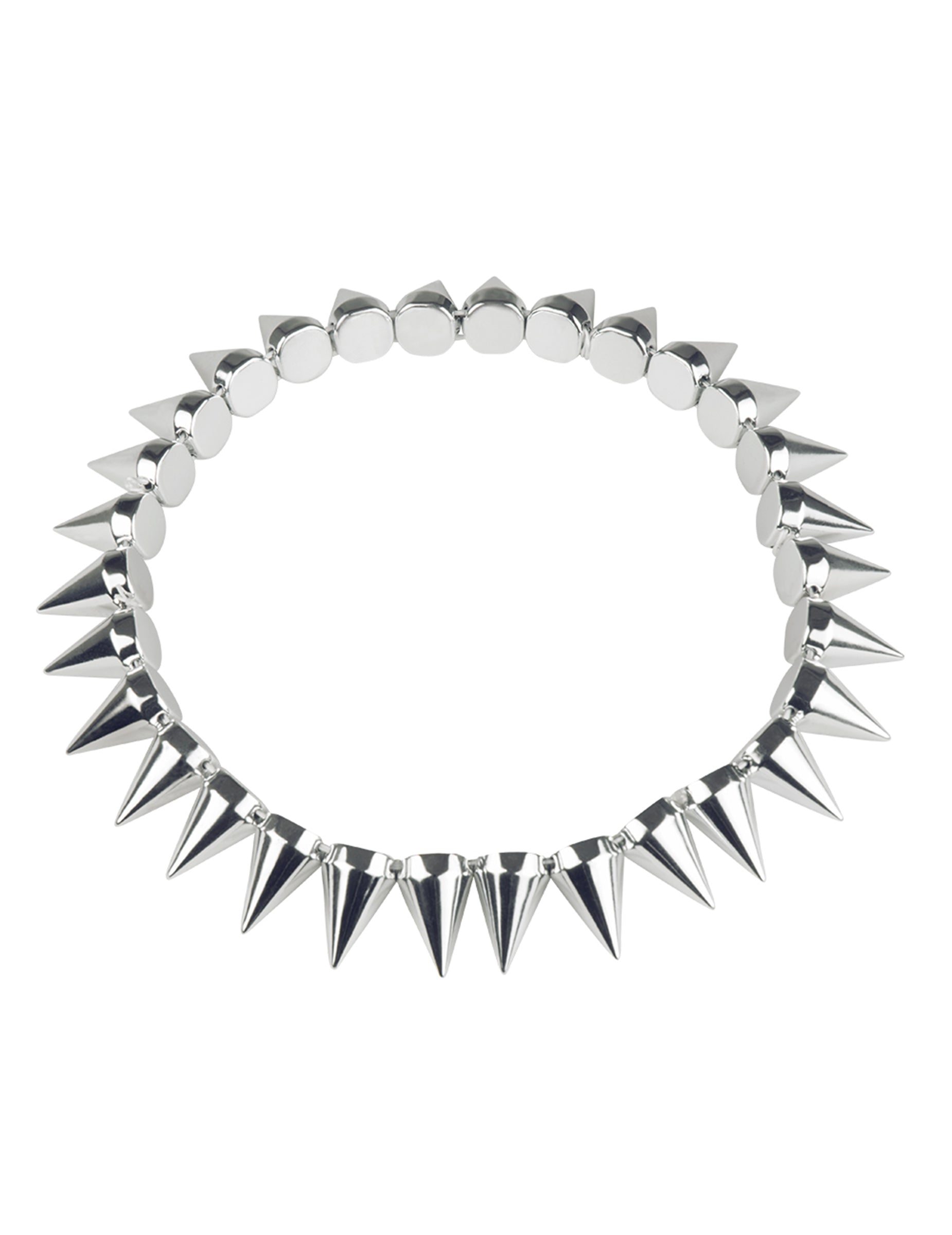 Ovaj odrasli punk ovratnik je srebrne boje. Karakteriziraju ga plastični šiljci. Jednostavno, ovaj je dragulj elastičan. Pristupite svom punk ili biciklističkom izgledu tijekom rock'n'roll večeri ili za kostim zabavu.