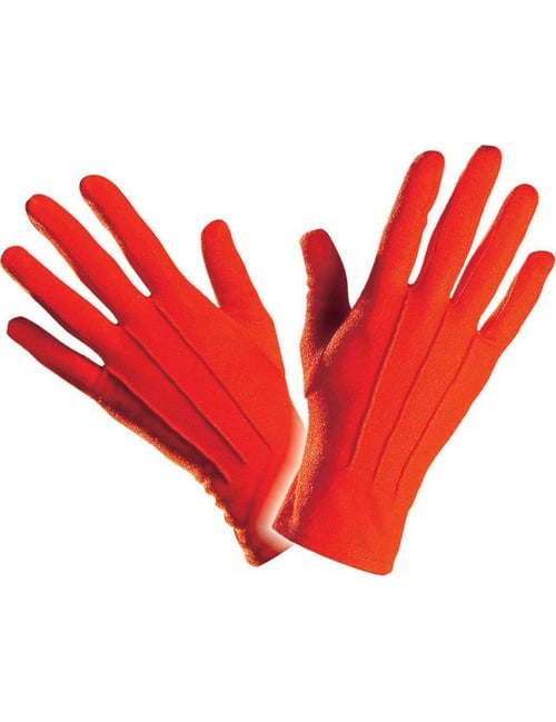 Ove crvene kratke rukavice su za odrasle. Maksimalno su duljine otprilike 22 cm. Ove šarene rukavice bit će savršene za dovršavanje kostima za klaun za karneval, na primjer. Autorska prava Widmann SRL