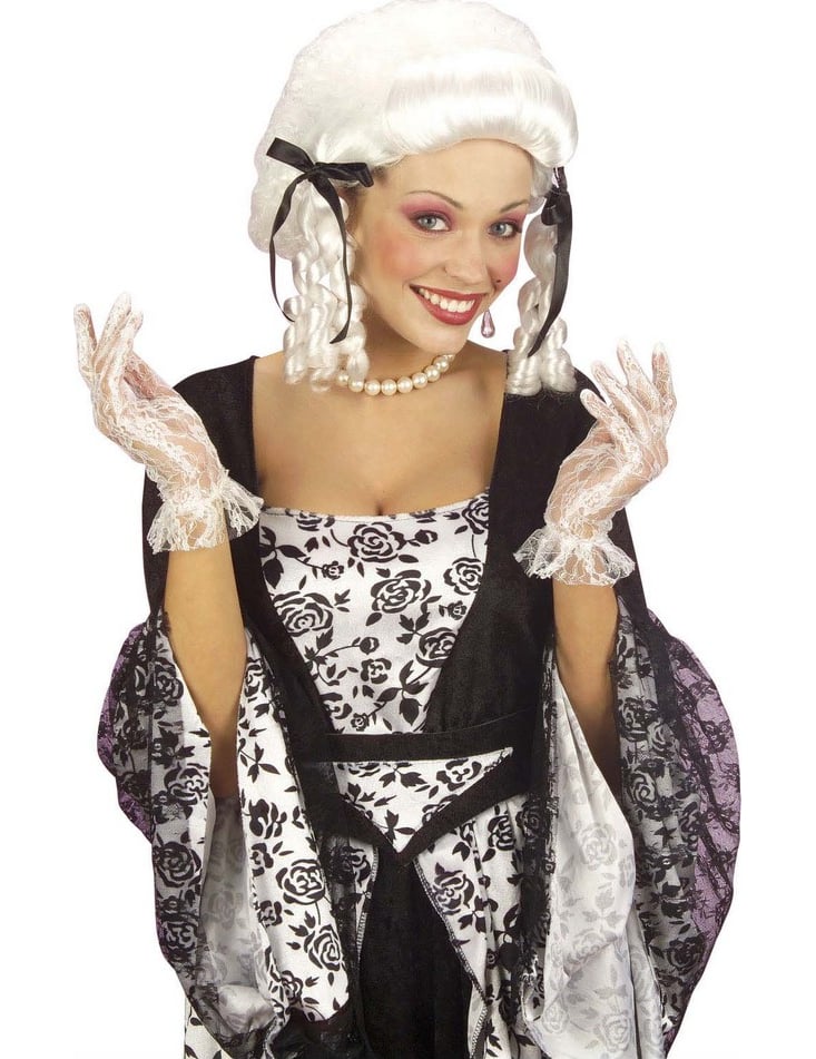 Ove kratke rukavice za odrasle su u bijeloj čipki. Maksimalno su duljine oko 25 cm. Ove bijele rukavice od čipke bit će savršene za dovršavanje markiznog kostima za baroknu ili renesansnu večer. Autorska prava Widmann SRL