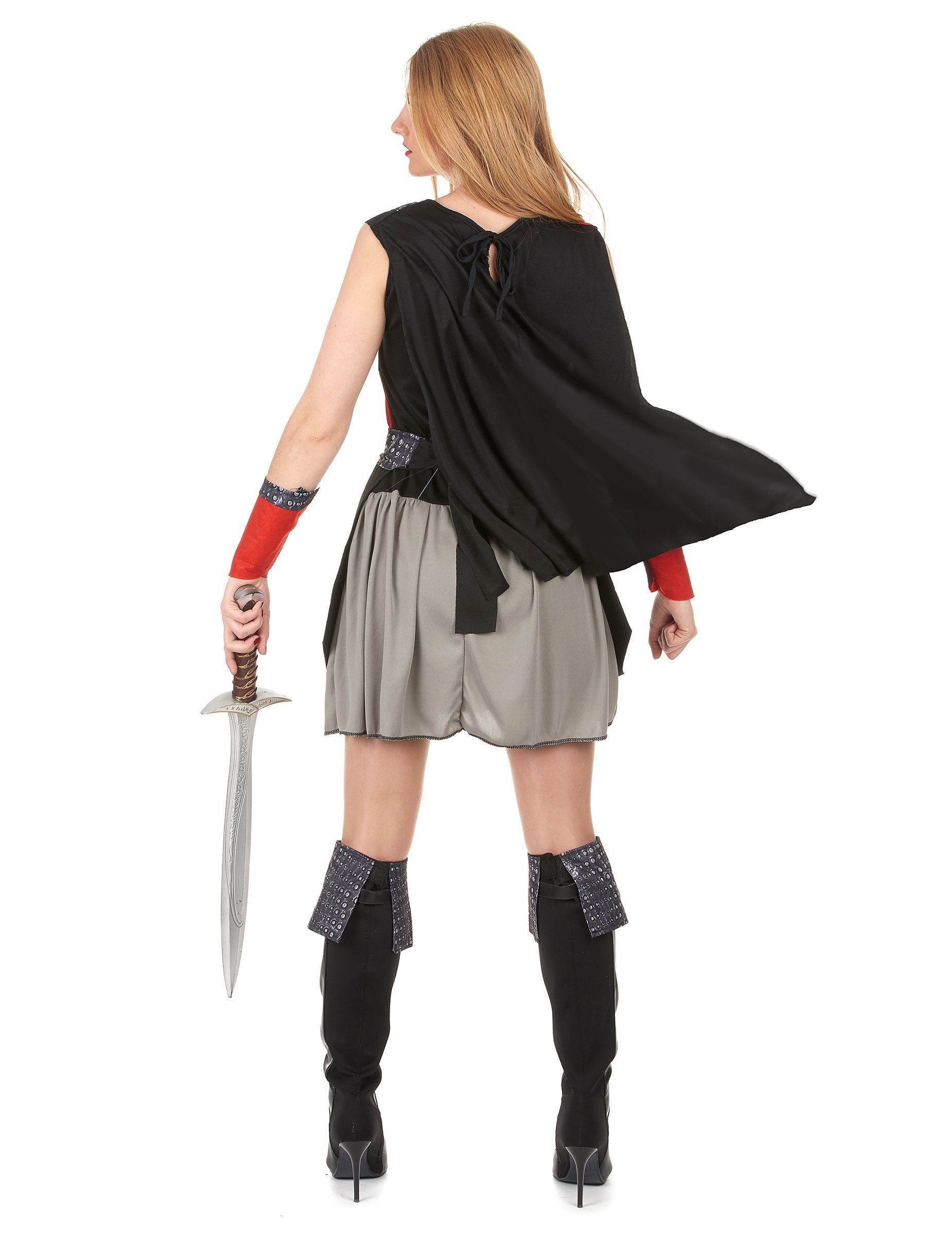 Ovaj srednjovjekovni vitez prerušen za žene uključuje haljinu s ogrtačem, remenom, rukavima, kičnicama (cipele nisu uključene). Haljina je bez rukava i zatvara se za vrat čipkom. Vrh ima četiri velika crna i crvena kvadrata. Okrugli vrat je Sturkade s kožnom tiskom tkaninom s malim nacrtanim noktima. Na prsima se šiva značka koja predstavlja srebrni lav. Kućica je siva i fina. Pojas se može postaviti na struk za simulaciju oklopa. Trake crne tkanine dovršene su savjetima za efekte. Crveni rukavi treba nositi na zglobovima. Zatvaraju se ogrebotinama. Podsjetnik na nokte prisutan je na jednom kraju manžeta. Efekti kože mogu se popraviti Velcrom iznad čizama, na primjer, kako bi se materijalizirala obloga. Tijekom večeri na temu srednjeg vijeka, nosite kostim ovog vojnika.