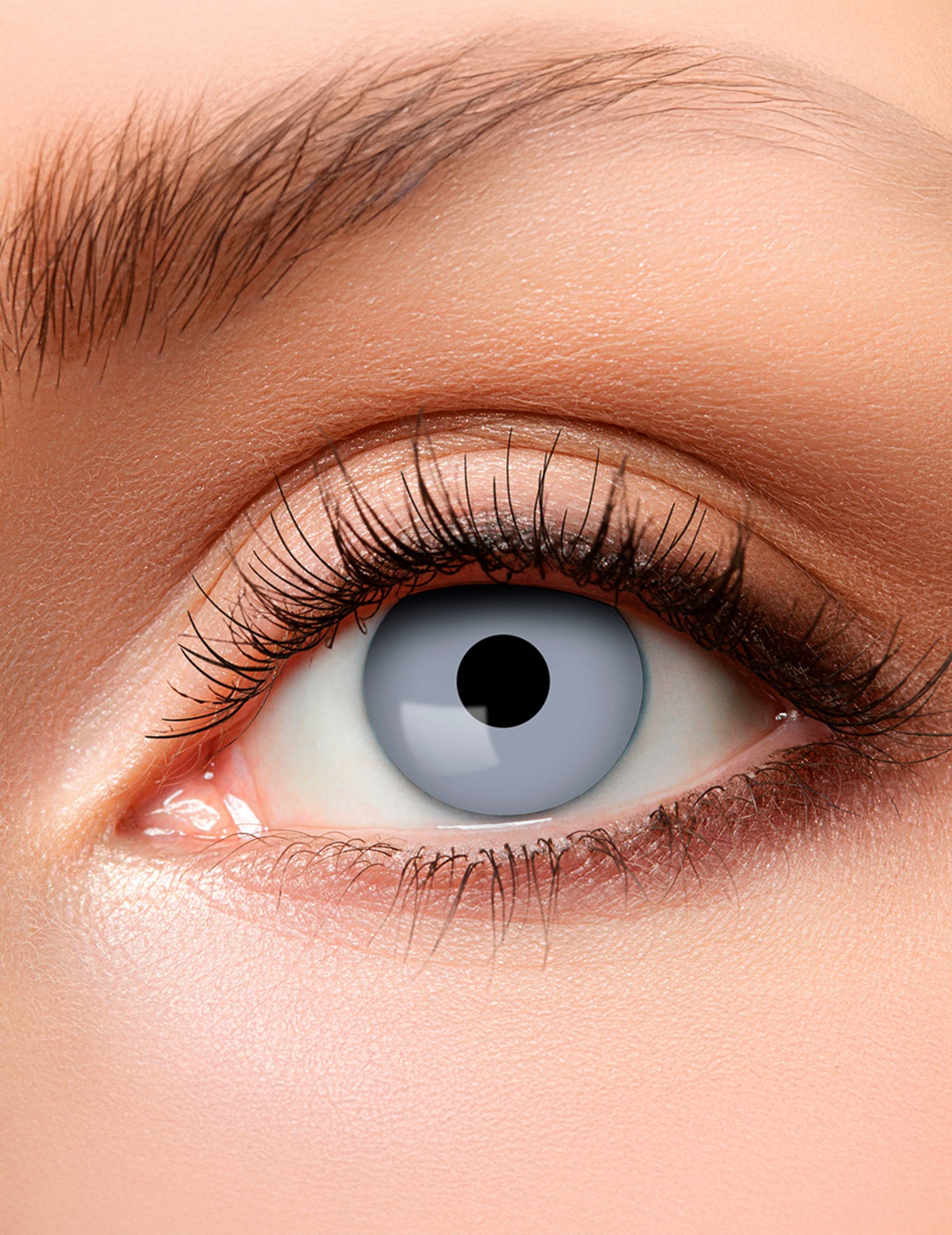 Ove kontaktne leće bez fantastične korekcije za odrasle daju vam jednoliku sivu nijansu. Ove leće imaju krivulju od 8,6 mm i promjer od 14,5 mm. Ne mogu se koristiti tjedan dana nakon otvaranja i sastaju se sa standardima CE0120, ISO9001, ISO13485 i KGMP. Pogledajte korisnički priručnik koji je uključen. Idealno za dovršavanje zombi kostima, stavite ove fantastične leće bez korekcije i zastrašite svoje prijatelje tijekom večeri Noći vještica.
