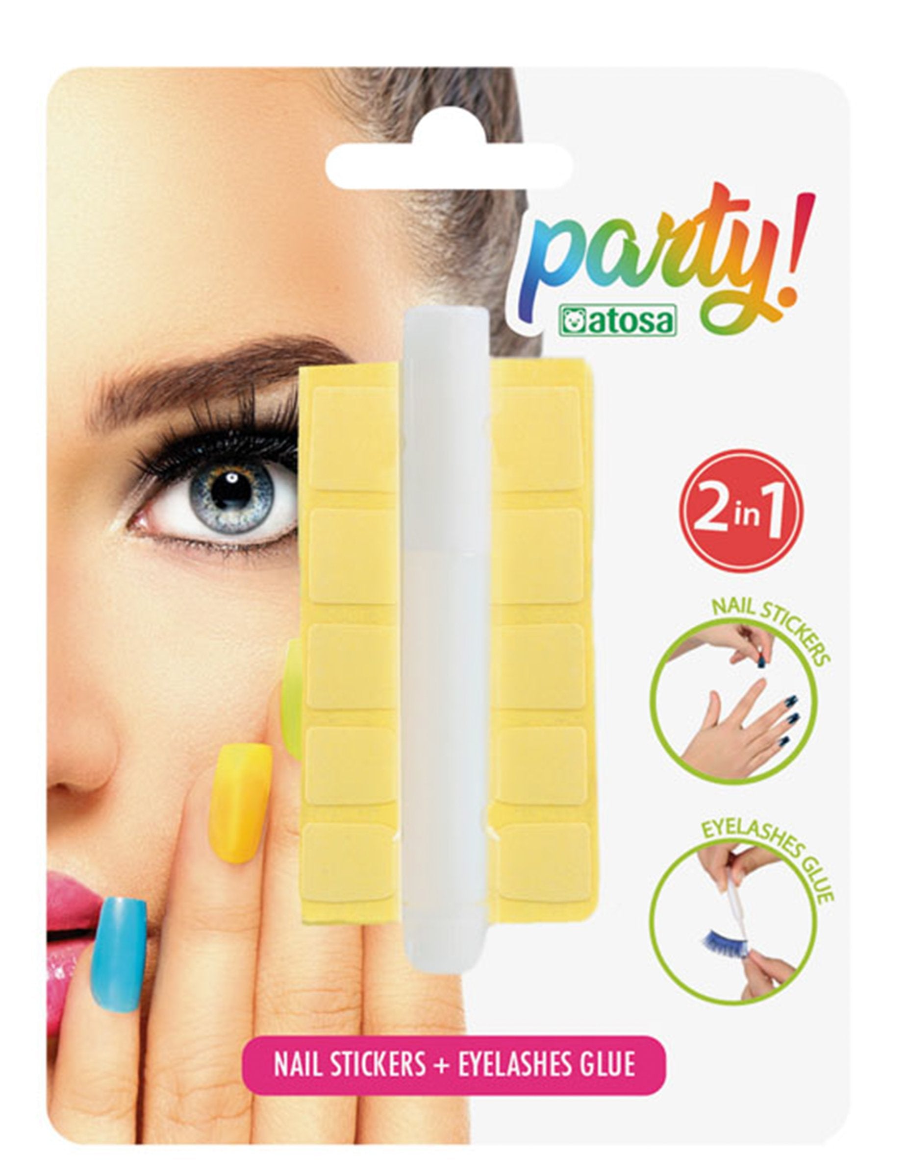 Ova serija sadrži cijev za ljepilo (1 ml) za lažne trepavice i naljepnice za nokte. Sadržaj je predviđen za upotrebu. Ljepilo možete zalijepiti lažne trepavice i naljepnice kako biste uljepšali nokte. Savršeno za originalni izgled tijekom prerušene večeri ili bilo kojeg drugog svečanog događaja.