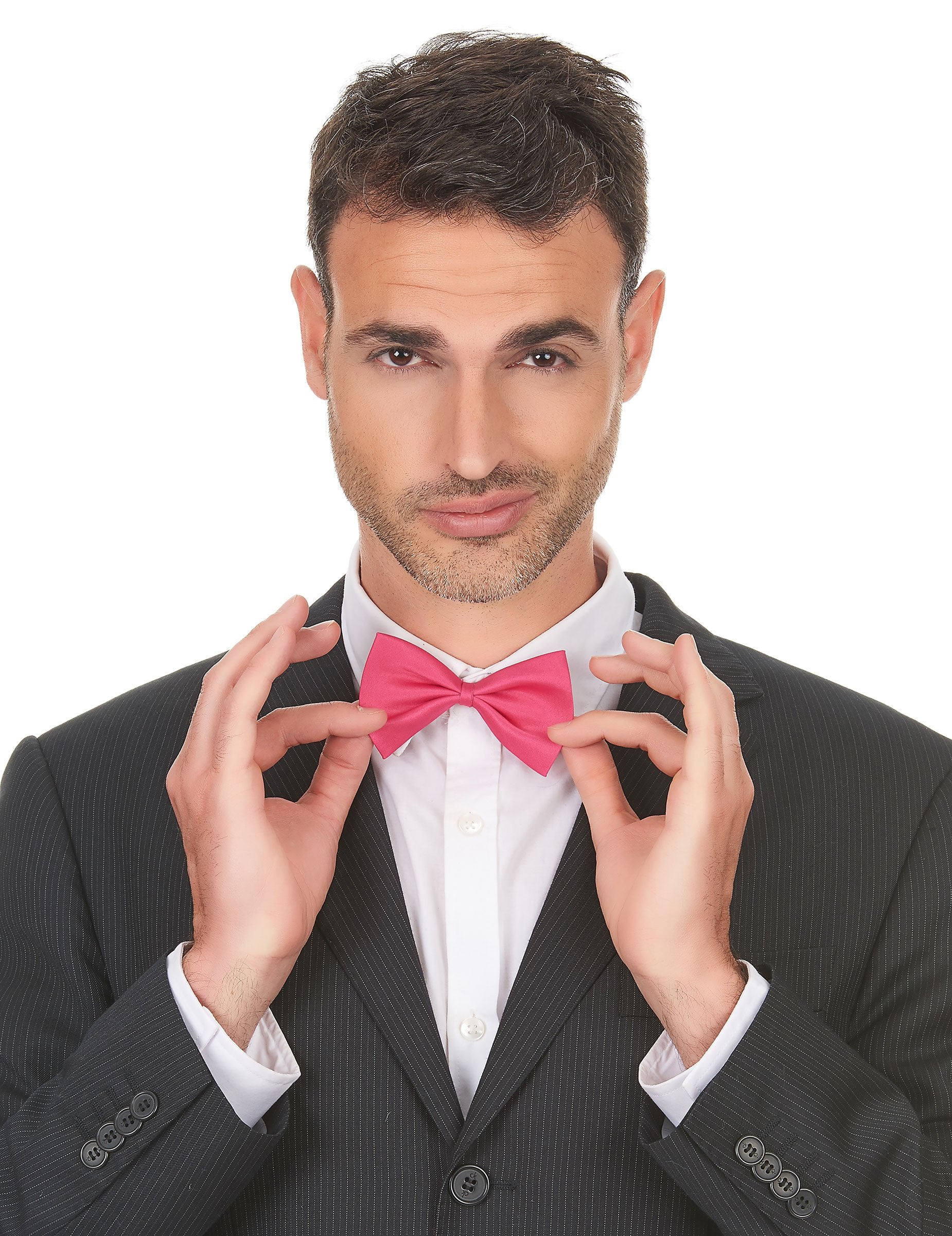 Ovaj čvor za odrasle leptir je fuksia ružičaste boje. Mjeri otprilike 12 x 8 cm. Ova kravata s pramcem lako će se održavati oko vrata pomoću elastike. Ova ružičasta kravata u svoj će kostim donijeti šik i šareni dodir.