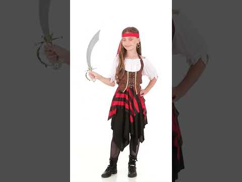 Ovaj kostim gusara za djevojčice sastoji se od haljine, korzeta i trake za glavu (mač, najlonke i cipele nisu uključeni).