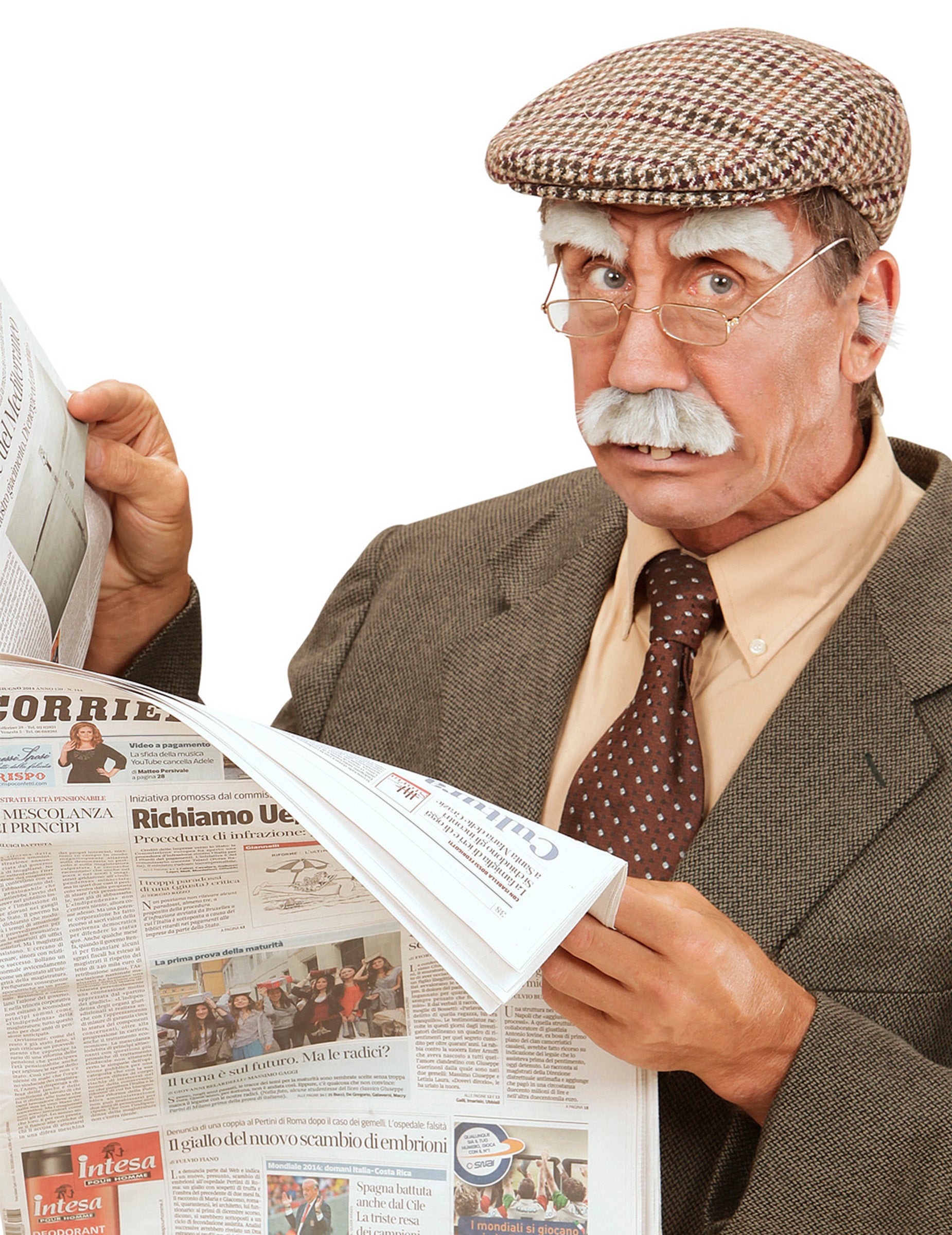 Ova serija sastoji se od par obrva i brkova za odrasle. Obrve i brkovi prekriveni su sivim sintetičkim dlačicama. Svi ovi dodaci su ljepljivi. Jednostavno morate ukloniti zaštitni film i nanijeti ove komade na lice. Obrve su duge otprilike 7,5 cm i 1,5 cm u maksimalnoj širini. Brkovi mjere duljinu od 10 cm za 2,5 cm u maksimalnoj širini. Ovi pribor bit će savršeni za dovršavanje djedovog kostima za karneval ili za večer prerušenu s prijateljima. Autorska prava Widmann SRL