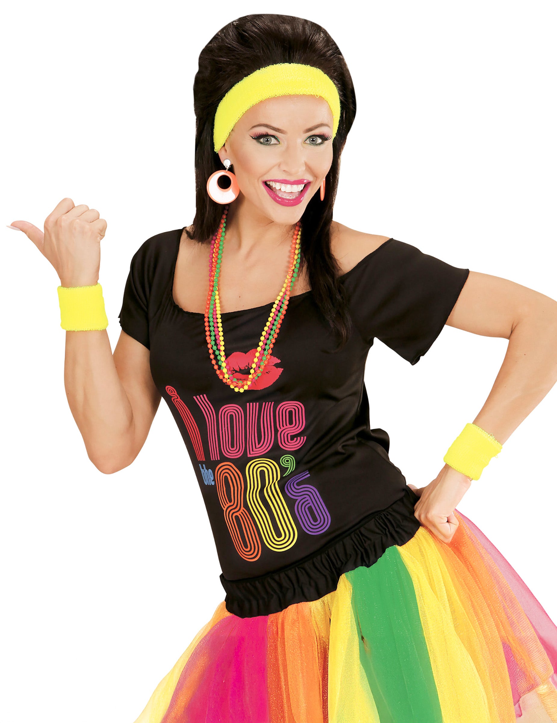 Ovaj par naušnica namijenjen je odraslima (nisu uključeni transparent i ogrlica). U plastici su fluorescentne narančaste boje. Oni će se zatvoriti pomoću kopče. Ove naušnice bit će idealan dodatak za dovršavanje vaše odjeće tijekom retro večeri na temu 80 -ih.