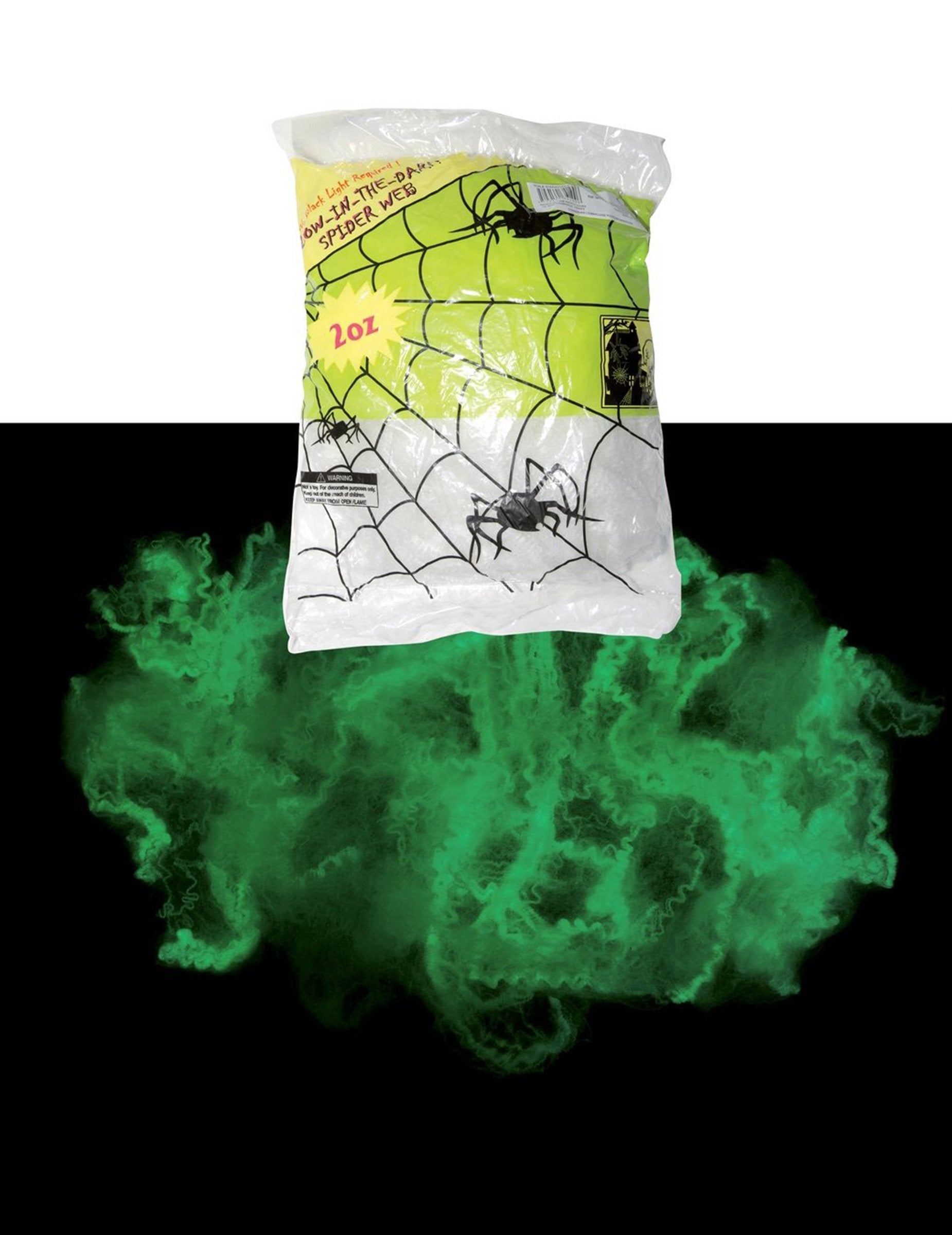 Ovaj ukrasni paukov web teži oko 56 g. Na dnevnom svjetlu ovo će se platno pojaviti bijelo. Ali jednom u mraku, ona je fosforescentna. Ovaj pauk web bit će savršen za pretvaranje vaše kuće u ukletu kuću na večeri Noći vještica.