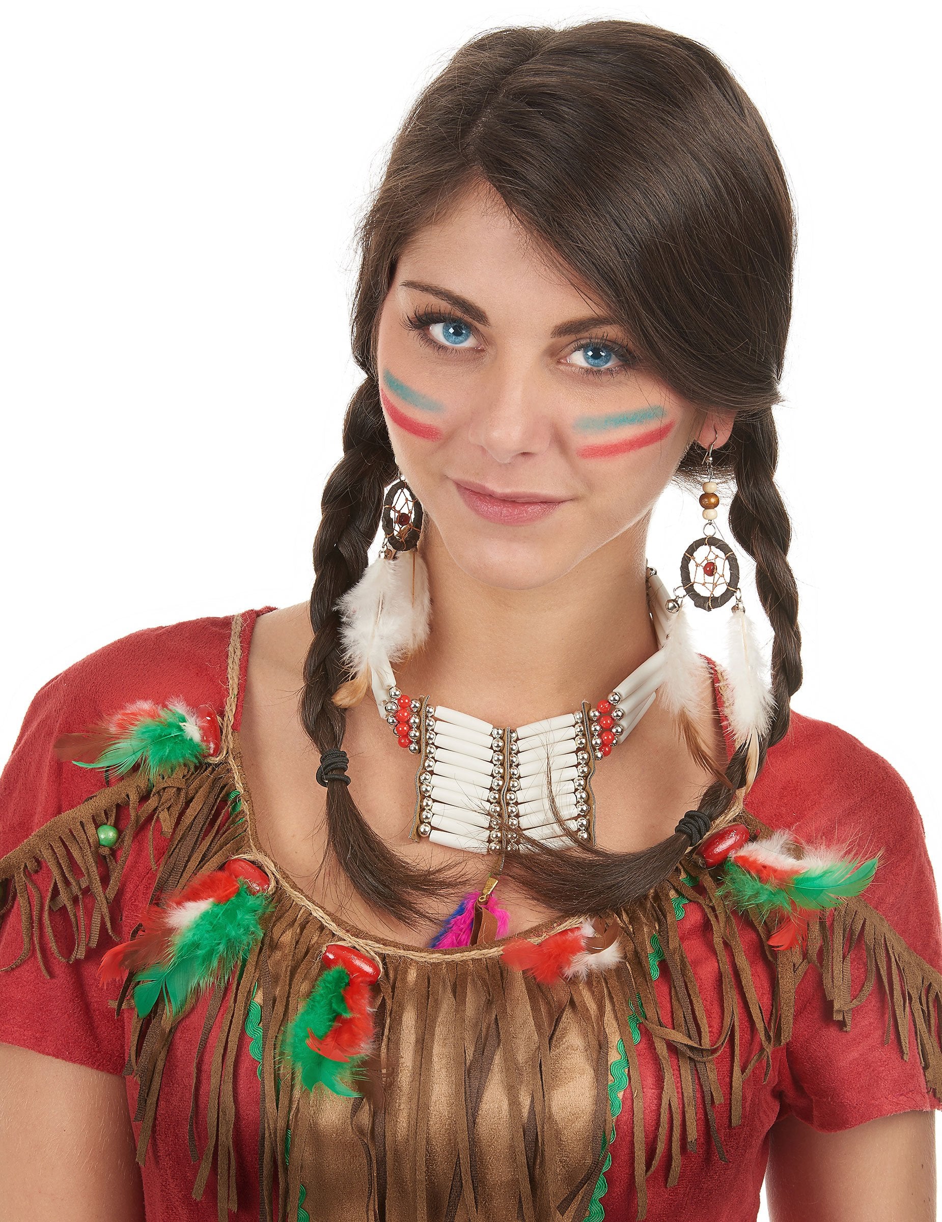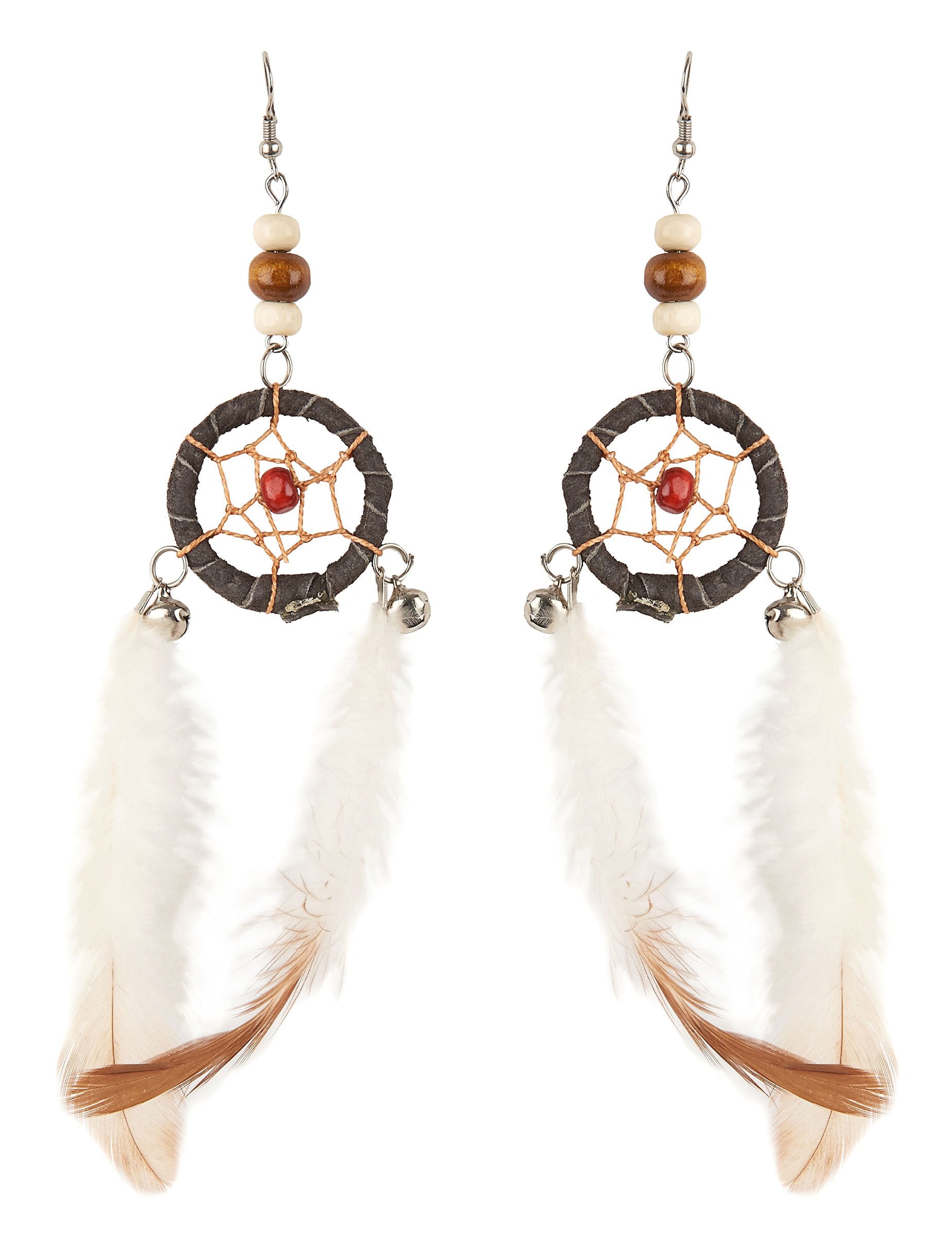 Ove naušnice za odrasle predstavljaju ulov indijskih sna. Bijelo i smeđe perje kao i zvona obješena su na kovrčama. Ove kovrče moraju imati probijene uši. Ove će kovrče biti savršene za dovršavanje indijskog kostima za karneval ili za zapadnu večer.