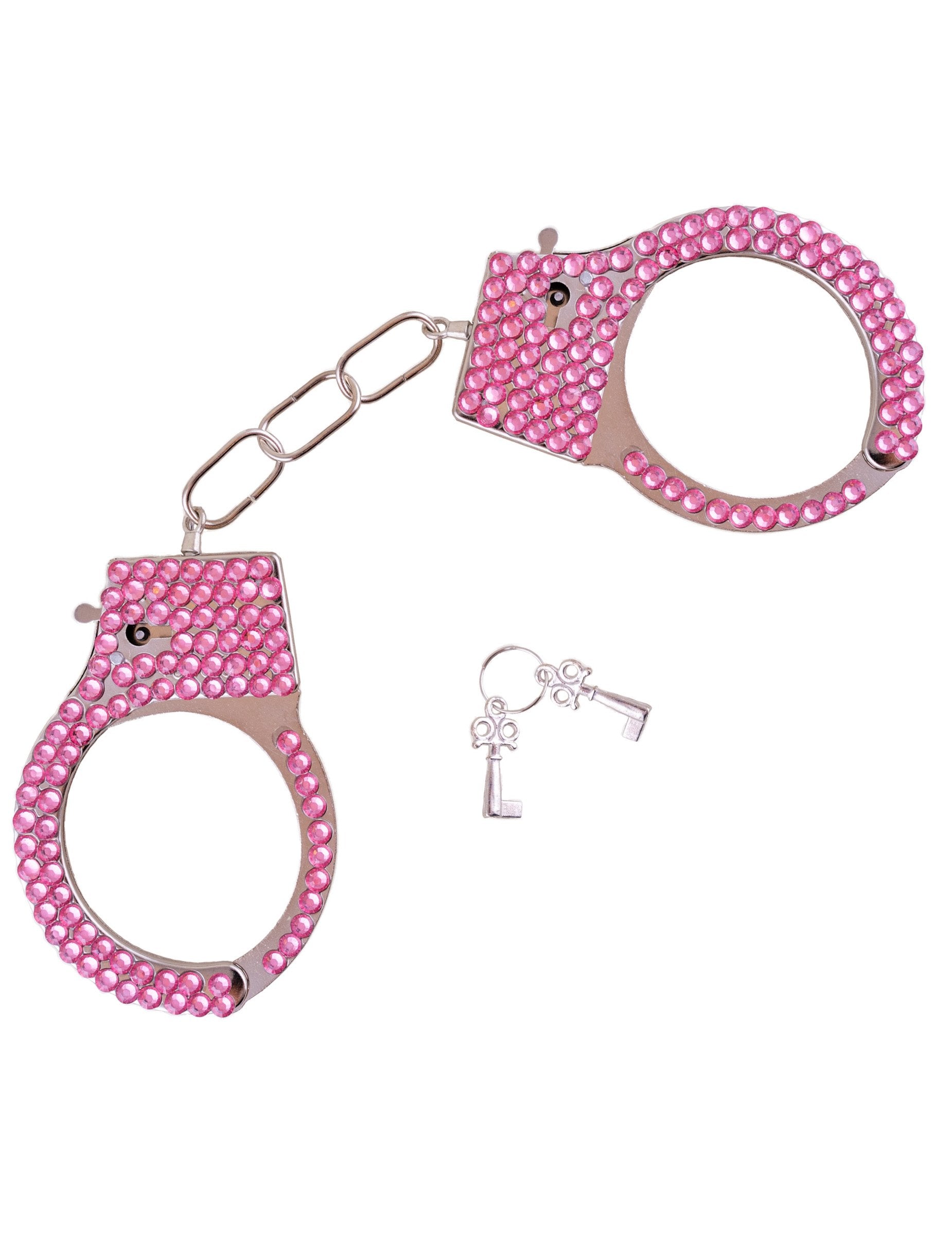 Ove odrasle policijske ručke izrađene su od metala prekrivenih ružičastim rhinestonesima. Lisice su opremljene bravom i navedena je set od 2 tipke. Glamurozni dodatak koji će usavršiti vaš policijski kostim do savršenstva tijekom jednoličnih tematskih večeri.