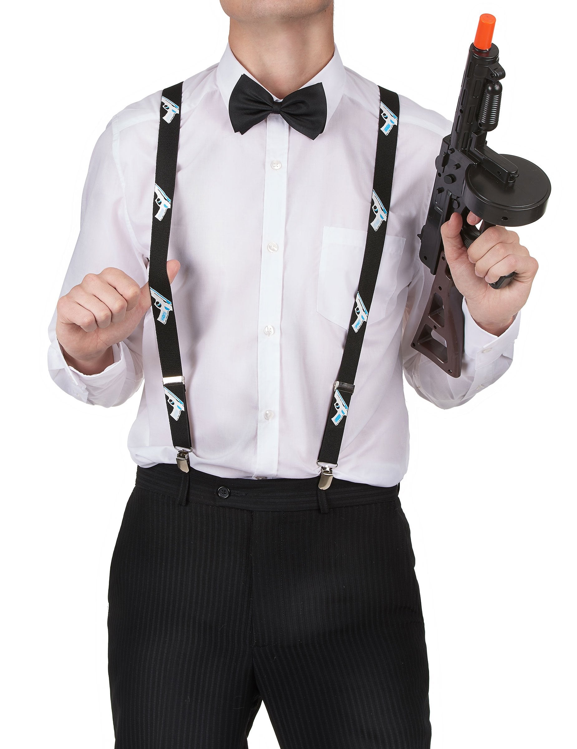 Ove suspendove su crni poliester s bijelim i plavim otiscima pištolja. Podesivi su i pričvršćuju se s kliještima. Suspenders se okupljaju na leđima da rade samo jedan leđa. Uz ovaj dodatak, budite spremni za svoje večeri na temu policije ili zatvora.