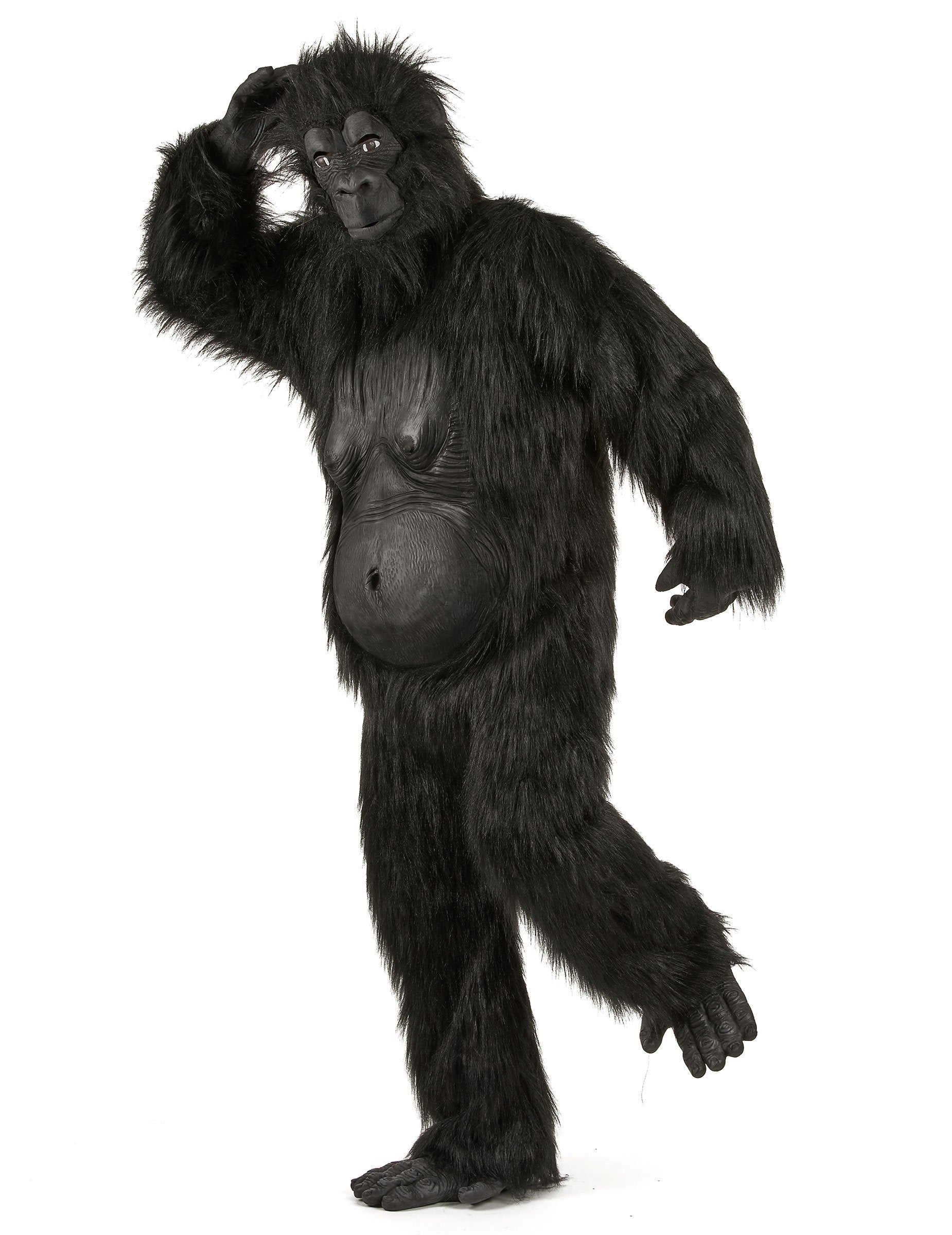 Ovaj kostim za odrasle gorile sastoji se od kombinacije, pune maske, dvije rukavice i dvije cipele. Kombinacija će u potpunosti pokriti vaše tijelo i lako se pričvrstiti na leđa zahvaljujući ogrebotinama. Element je u potpunosti prekriven crnim sintetičkim dlačicama, savršeno evocirajući ljuštenje primata. U pogledu trbuha, dio lateksa evocira torzo životinje. Ovaj će dio biti obložen pjenom ili tkaninom za više realizma. Maska je puna i lako će se dogoditi. Lubanja je u potpunosti prekrivena lažnim krznom, a lice je vrlo detaljan lateks. Rupe u razini očiju, nosnice i usta osigurat će vašu udobnost tijekom luke. Rukavice su u potpunosti u lateksu i bit će vrlo jednostavne. Za više realizma možete proći rukave kombinacije preko nje. I na kraju, dvije cipele predstavljaju stopala toliko karakteristične za primate. Možete ih proći s čarapama za više utjehe. Ovom ultra realističnom prerušavanjem napravit ćete osjećaj tijekom prikrivene večeri ili za predstavu!
