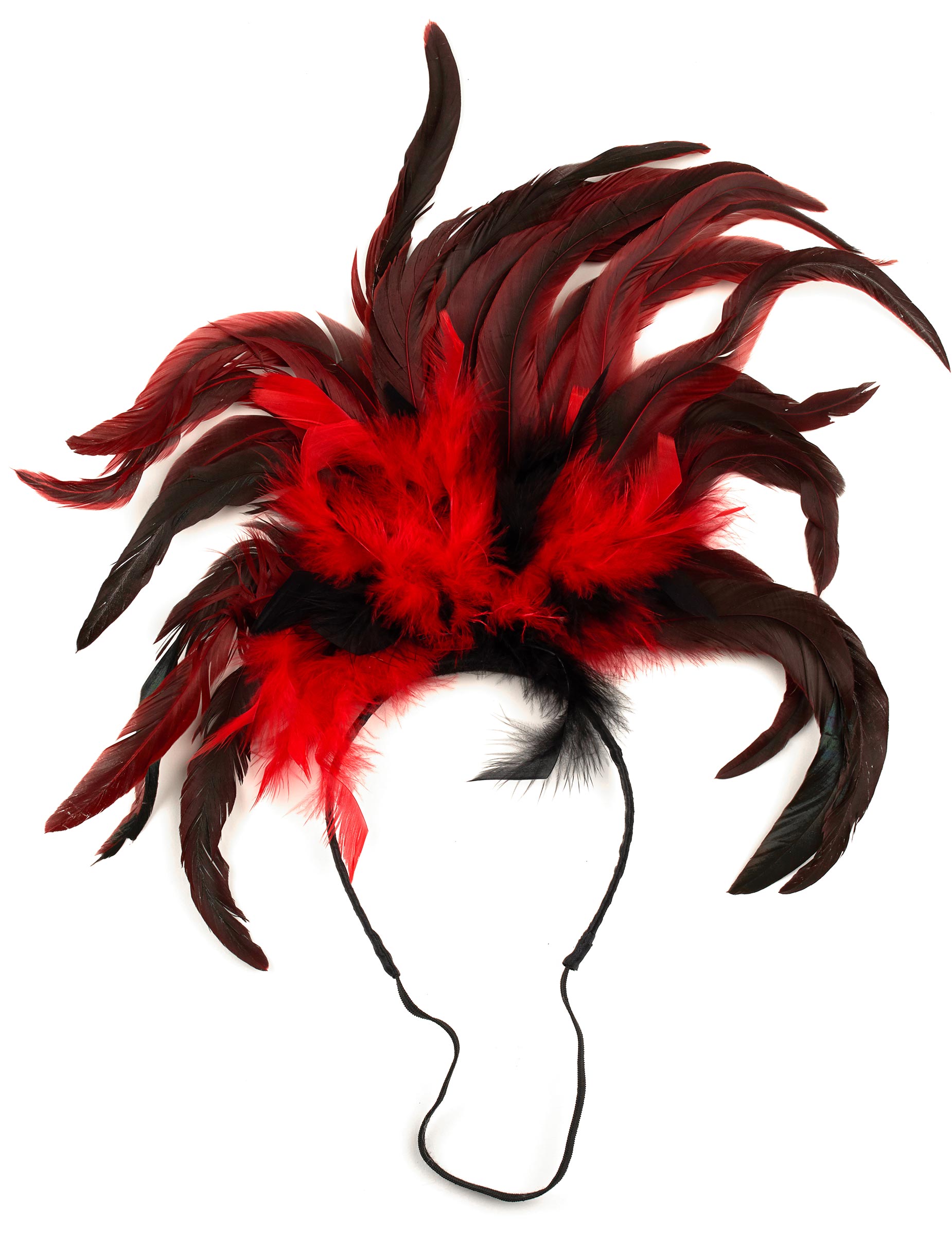 Ova pernata traka za glavu kabareta za žene izrađena je od plastike i prekrivena crnom tkaninom. Sintetičko perje je crveno i crno. Traka za glavu omogućit će vam dobru pomoćnu podršku na glavi. Tijekom prerušenih večeri ova će traka za glavu biti idealna za odijevanje lepinje, na primjer. Skicirajte nekoliko plesnih koraka i naprijed glazbu!