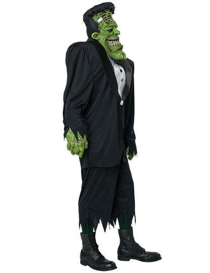 Ovaj kostim za odrasle Frankenstein sastoji se od visokih, hlača, par rukavica, maske, čarapa i ramena na napuhavanje (cipele i mikro nisu uključeni). Vrh daje iluziju kostim jakne. Crna je i bijeli napad koji predstavlja košulju s pramčanom kravatom prisutan je na prsima. Rukavi su dugi i nazubljeni na krajevima, a ovratnik je izrađen od pjene. Lažni gumbi također su ušiveni na prednjem dijelu odjeće. Konačno, ramena na napuhavanje, vrlo jednostavna za upotrebu, donijet će natečen učinak u odjeću. Crne hlače su elastične u struku za maksimalnu udobnost. Poslužuje se na krajevima i stići će na koljena. Uključena je i puna maska koja predstavlja glavu lika. Nalazi se u fleksibilnom lateksu i ima vrlo realne završne obrade. Fleksibilne rukavice od lateksa i velike zelene čarape doći će pristupiti ovom setu. Ovaj će kostim biti savršen za teroriziranje vaše pratnje, na primjer, na Noć vještica.