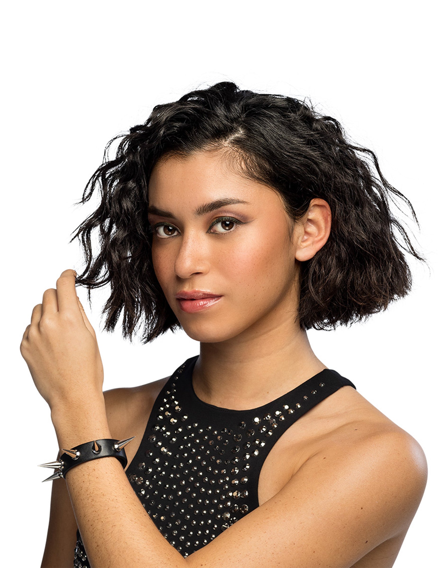 Ova narukvica za odrasle punk doista je crna koža. Ukrašen je dugim srebrnim metalnim vrhovima. Ova se narukvica zatvara gumbom za pritisak i može se prilagoditi na 2 razine kako bi se lako prilagodila ručnom zglobu. Ovaj dodatak bit će savršen za dovršavanje punk kostima za karneval.