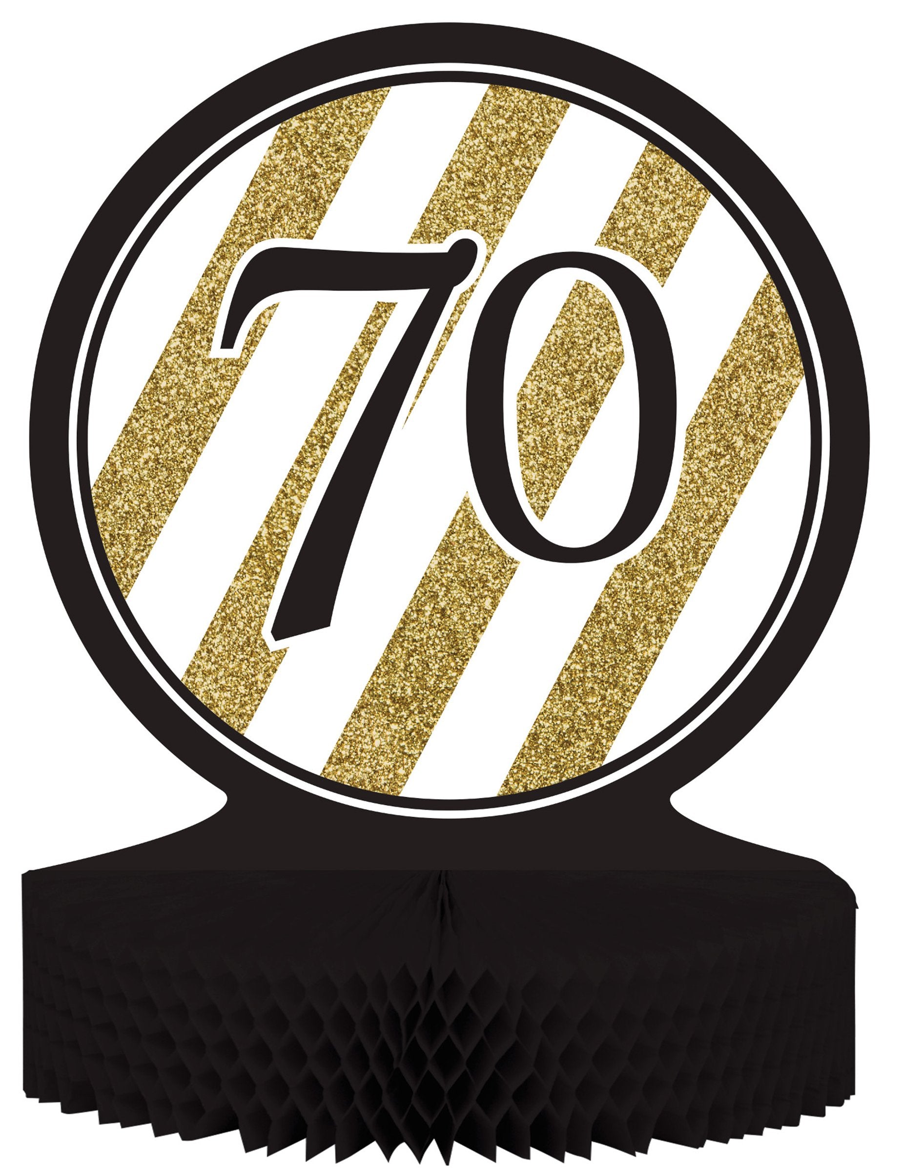 Središnji ukras za stol od saćastog papira 70 godina crno-zlatni 23 x 30 cm