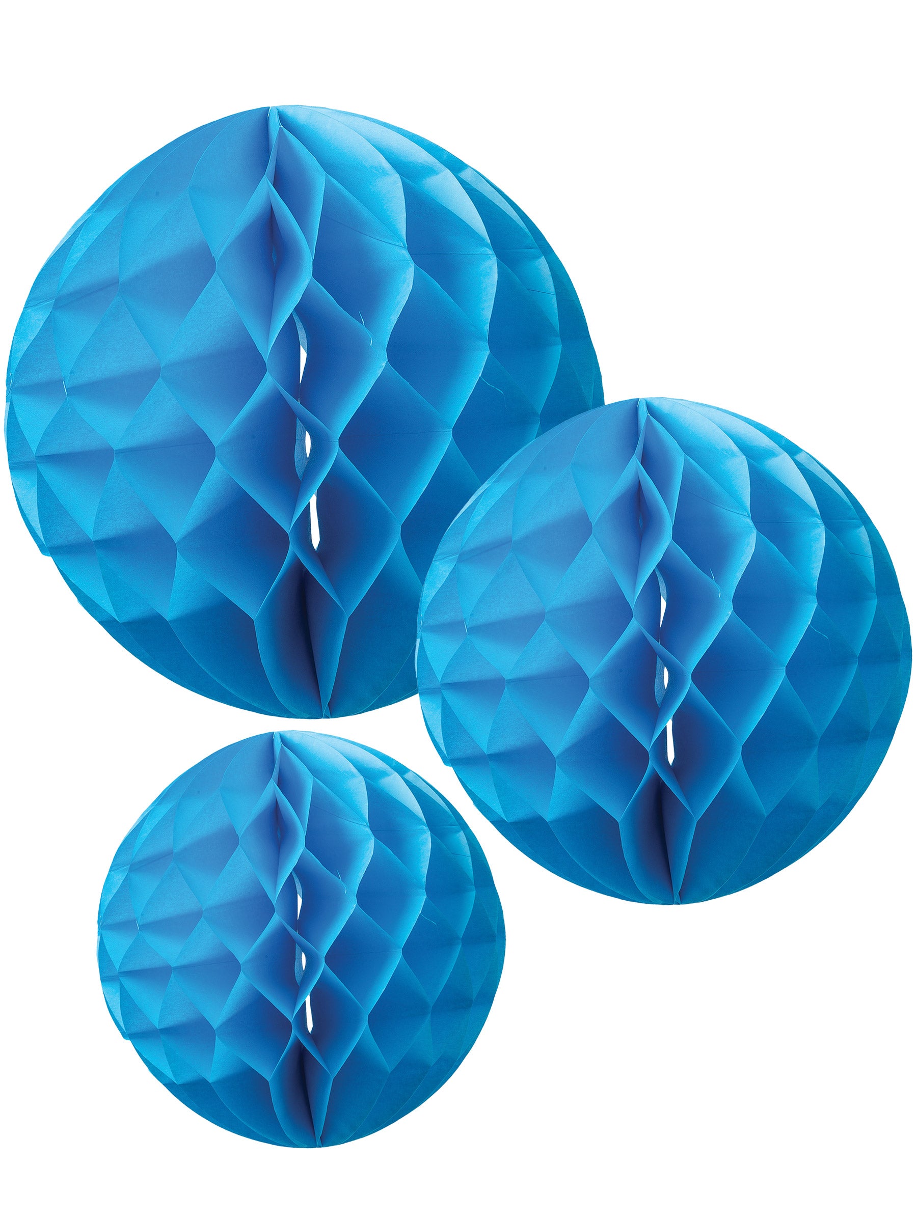 Dodajte dašak živosti vašem događaju s ovim setom od 3 viseće kugle različitih formata. Izrađene od saćastog papira u prekrasnoj tirkizno plavoj boji, dolaze u promjerima od 15, 20 i 25 cm. Svaki element ima praktičnu uzicu za brzo postavljanje na strop. Ovi su dodaci savršeni za festivno ukrašavanje tijekom rođendana ili ljetne zabave.